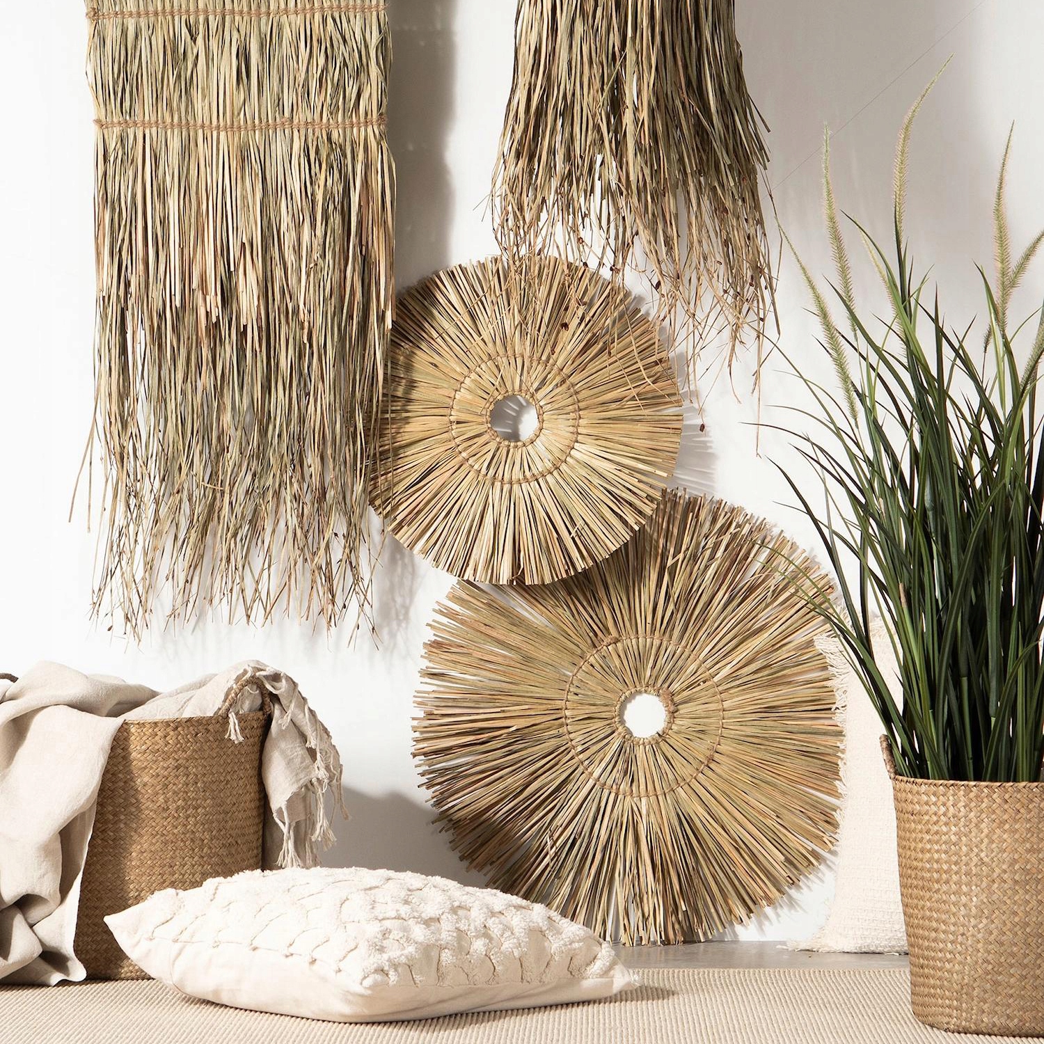 Этот настенный декор – настоящий must-have для любительниц натуральных аксессуаров и стиля бохо. Изготовленная вручную из сушеных морских трав, она восхищает своей легкостью, структурой и неповторимым внешним видом. Его сияющая форма отсылает к солнцу и гармонии природы – она привносит в интерьер тепло, свободу и неповторимую атмосферу.