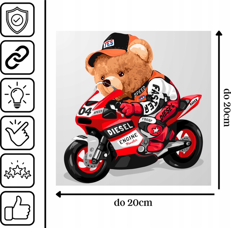 Просматривая «Термотрансферная наклейка «Мишка Тедди Ральф Мотоциклист» до 20 см.», вы можете быть уверены, что данный товар из каталога «Нашивки» будет доставлен из Польши и проверен на целостность. В цене товара, указанной на сайте, учтена доставка из Польши. Внимание!!! Товары для Евросоюза, согласно законодательству стран Евросоюза, могут отличаться упаковкой или наполнением.