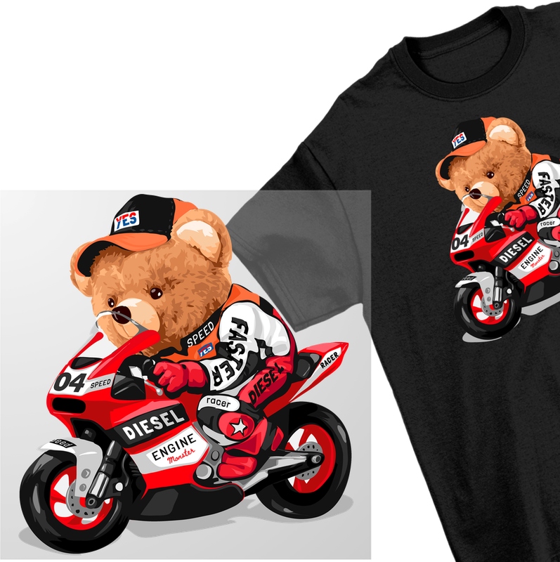 Термотрансферная наклейка «Мишка Тедди Ральф Мотоциклист» до 20 см.