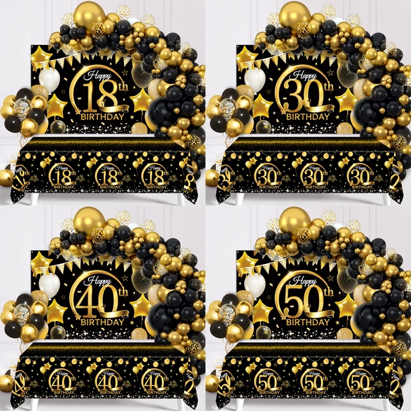 УКРАШЕНИЕ ШАРАМИ ЧЕРНЫЕ И ЗОЛОТЫЕ ШАРЫ 50 СКАТЕРТЬ НАБОР НАСТЕННОЙ ГИРЛЯНДЫ ФОНА