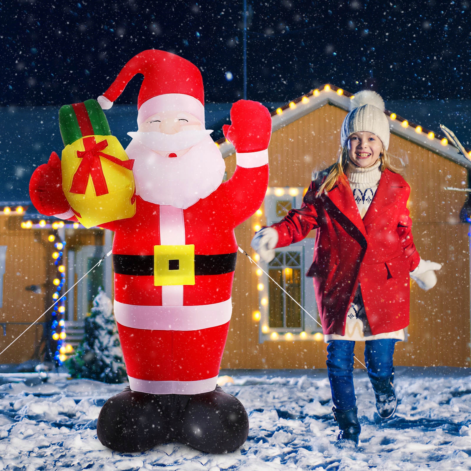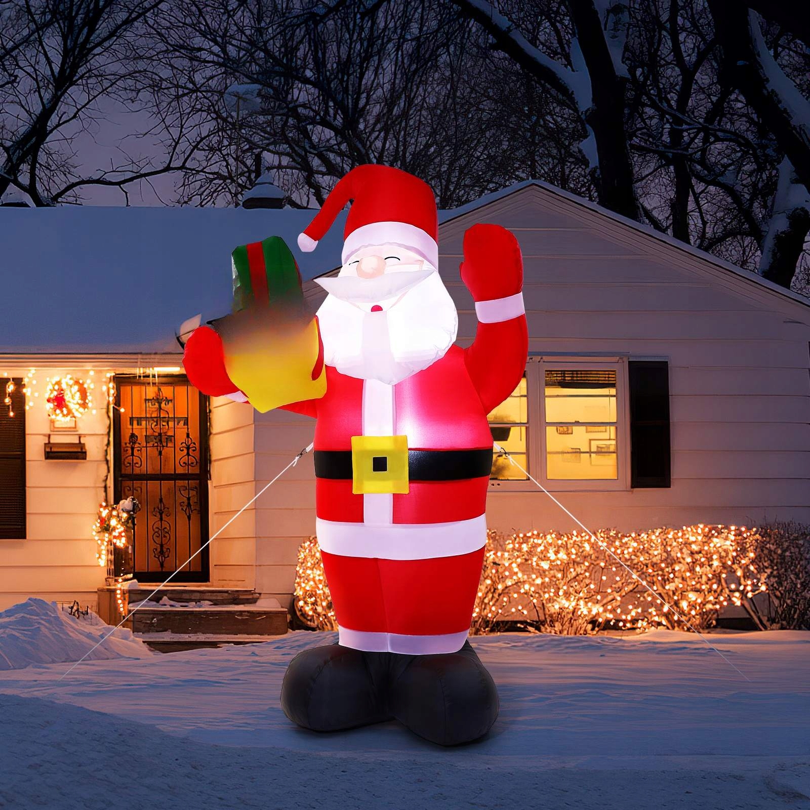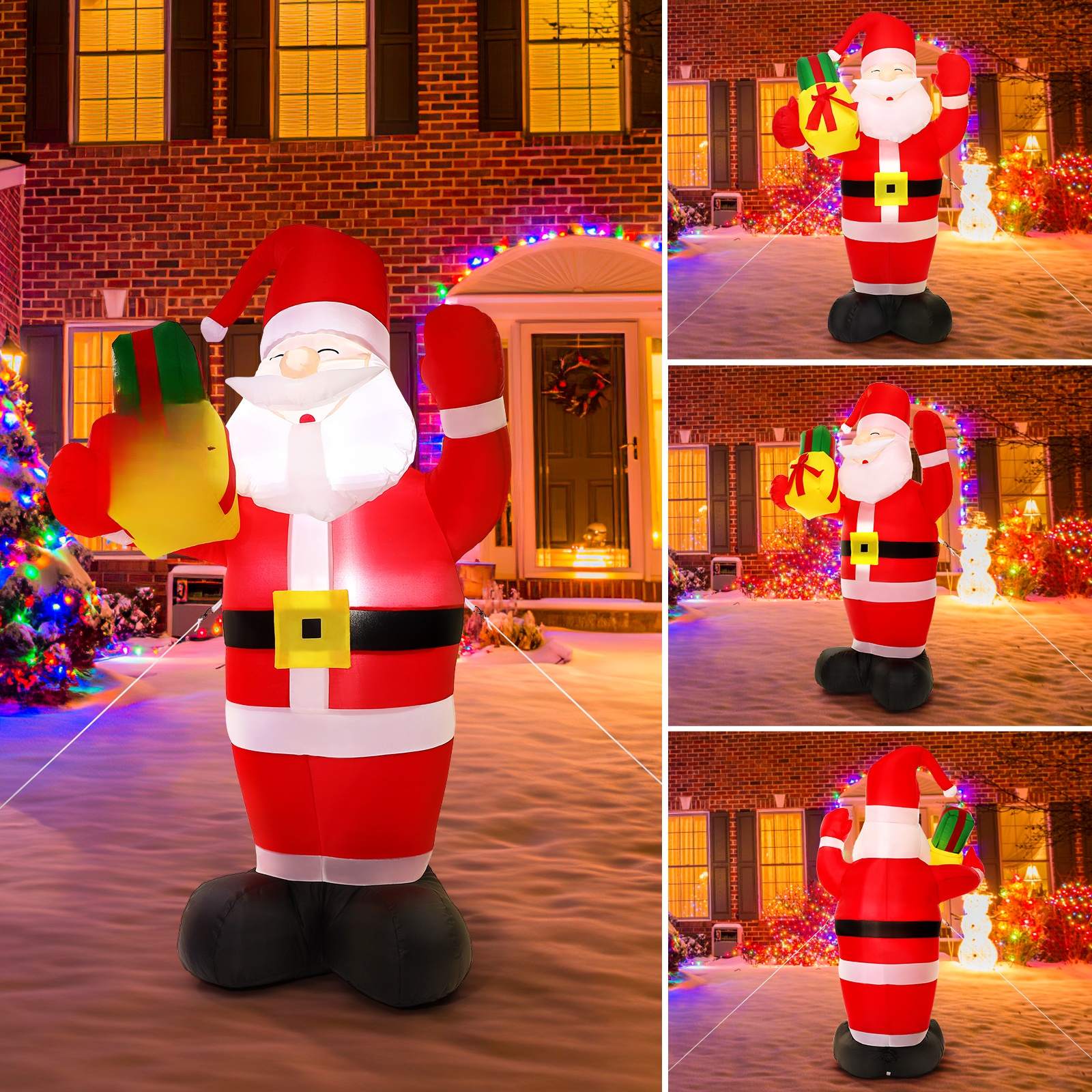 ✅Используйте нашу надувную Санта-Клаус, чтобы украсить свой двор, лужайку, сад, гостиную, коридор и другие места! Этот надувной декор легко надувать и сдувать, он выполнен в классическом стиле Санта-Клауса с подарочной коробкой и добавит в ваш дом еще больше атмосферы рождественской вечеринки. Встроенные светодиодные фонари обеспечивают идеальный эффект освещения.