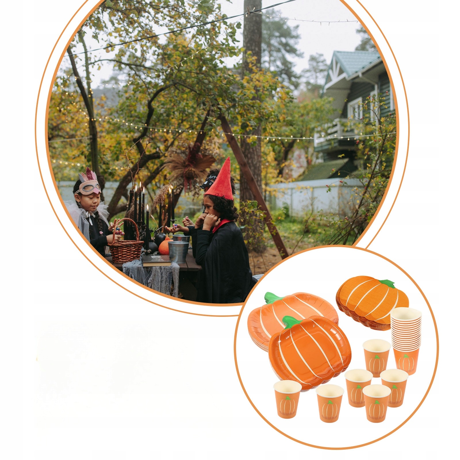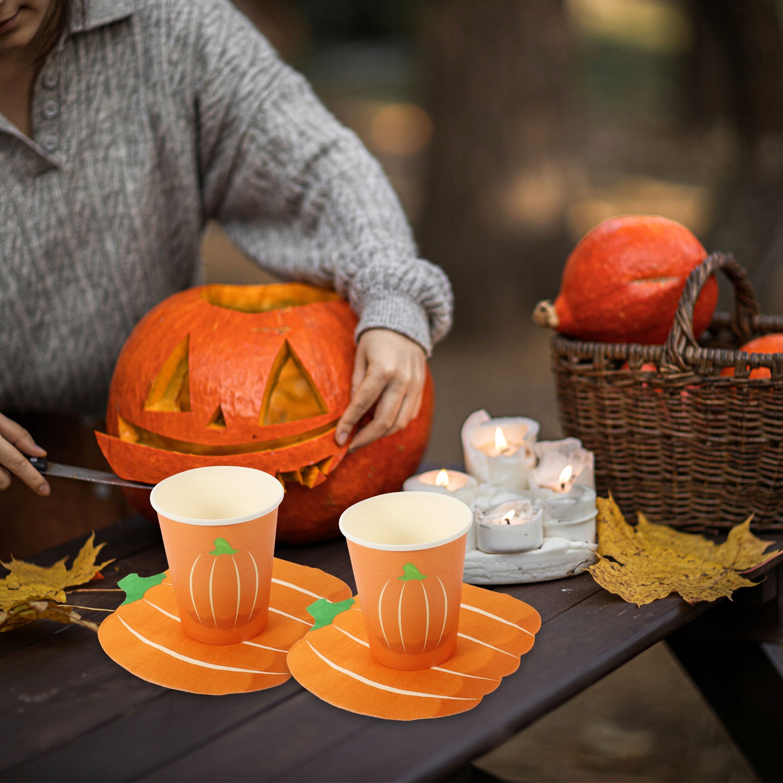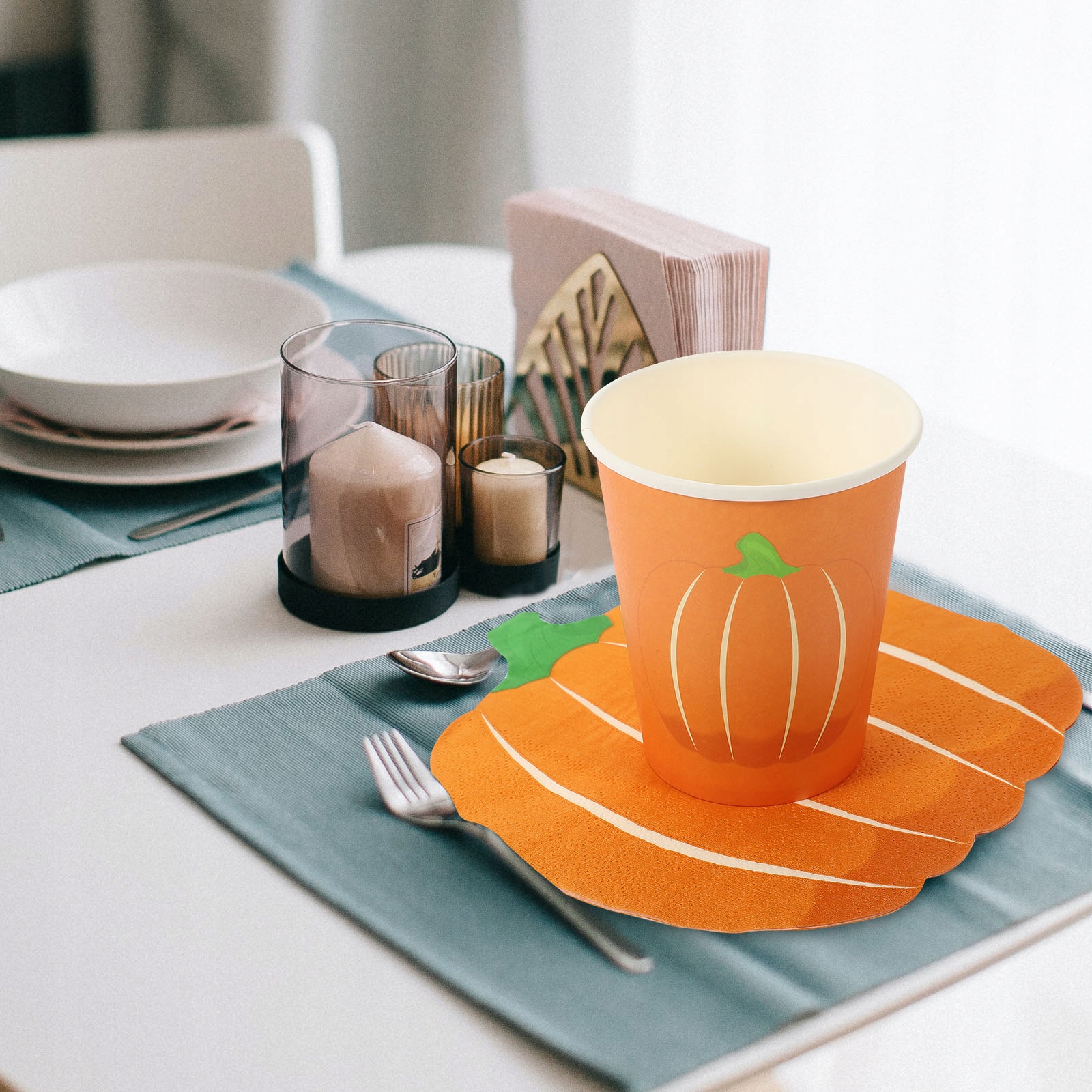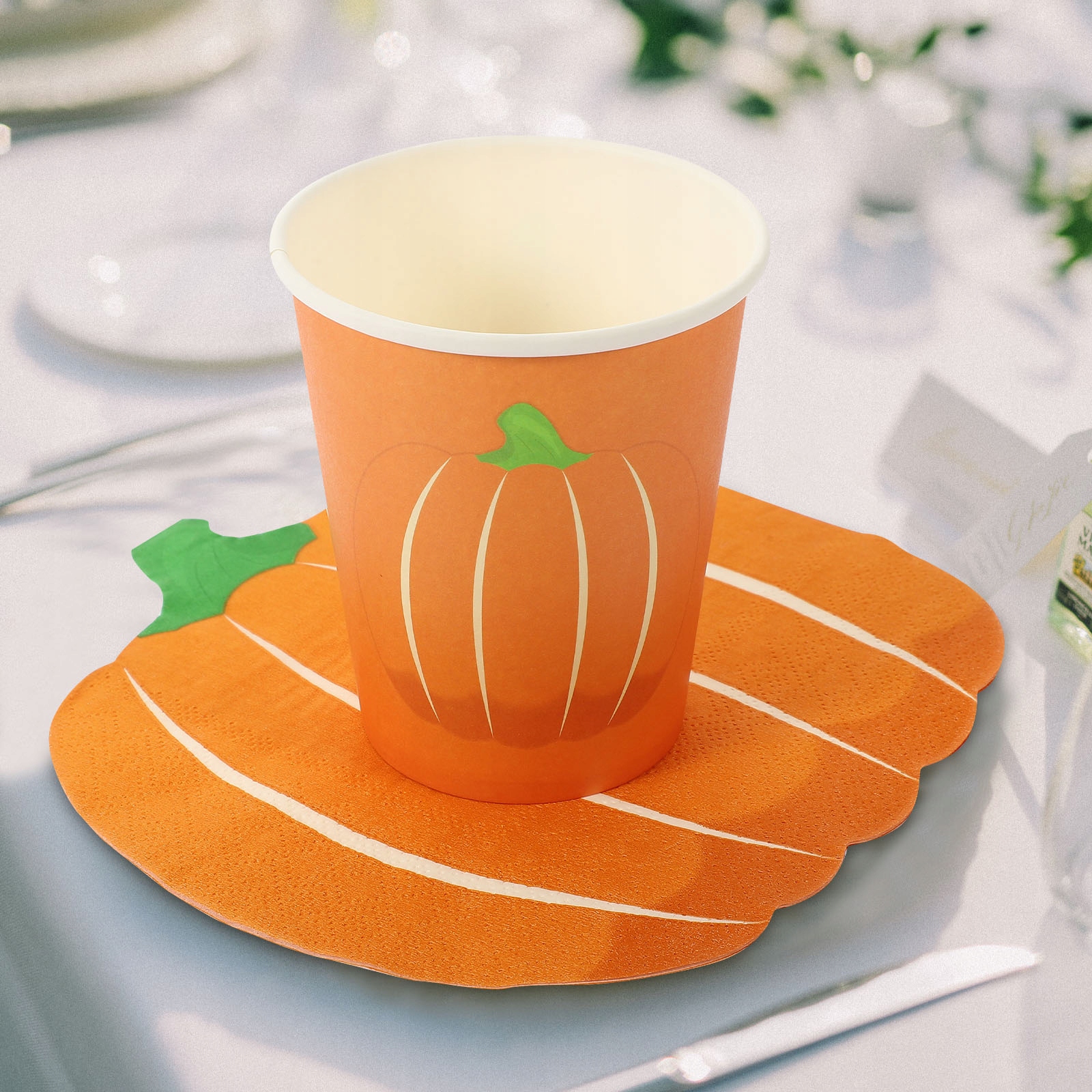 ✅Тарелки из тыквы 25 × 7 дюймов Тарелки из тыквы 25 × 9 дюймов 24 бумажных стаканчика из тыквы 25 тыквенных салфеток