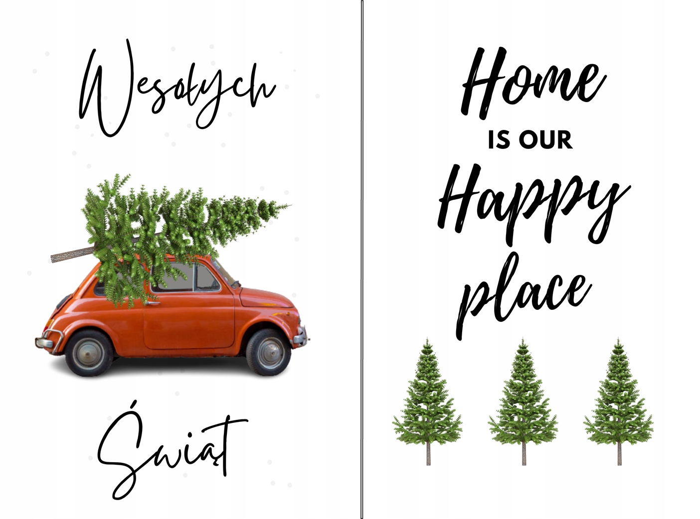 ПЛАКАТ 2 ЧАСТИ - Счастливого Рождества с красной машиной и Дом - наше счастливое место с елками отправлено вам по электронной почте .