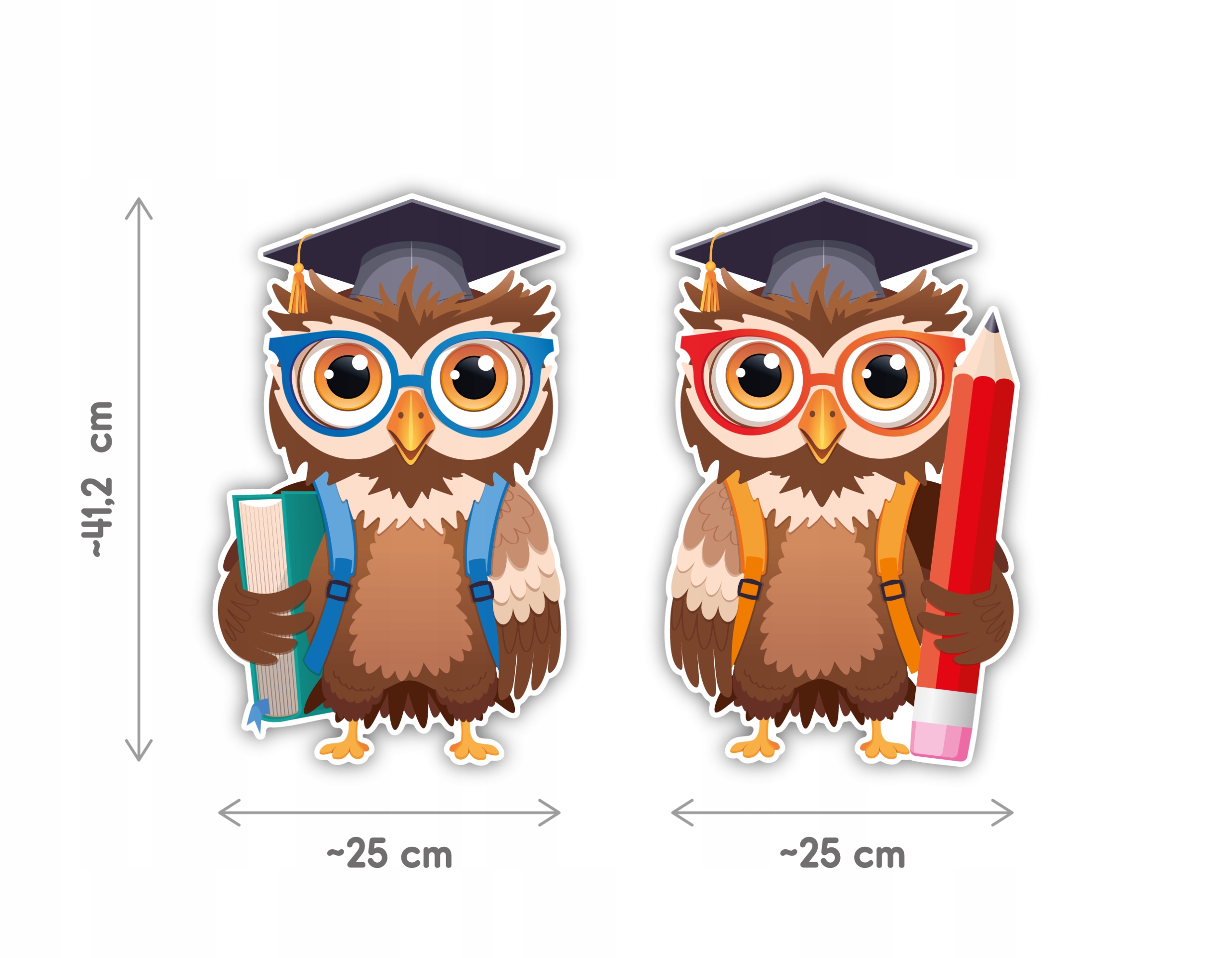 ДЕКОРАЦІЯ ШКІЛЬНОГО ВІКНА - ВЕЛИКІ СОВИ В БІРЕТАХ (двосторонні) - LearnHow