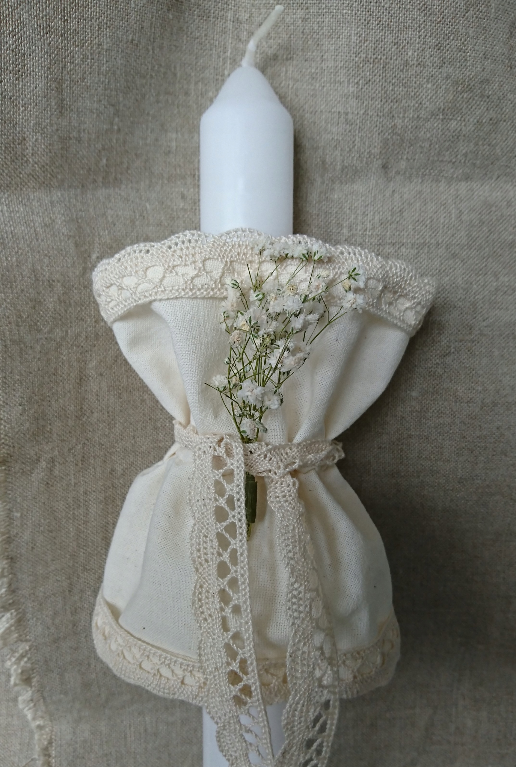 Красивое классическое украшение (профитка) ручной работы для свечи, причастной или крещенской свечи.