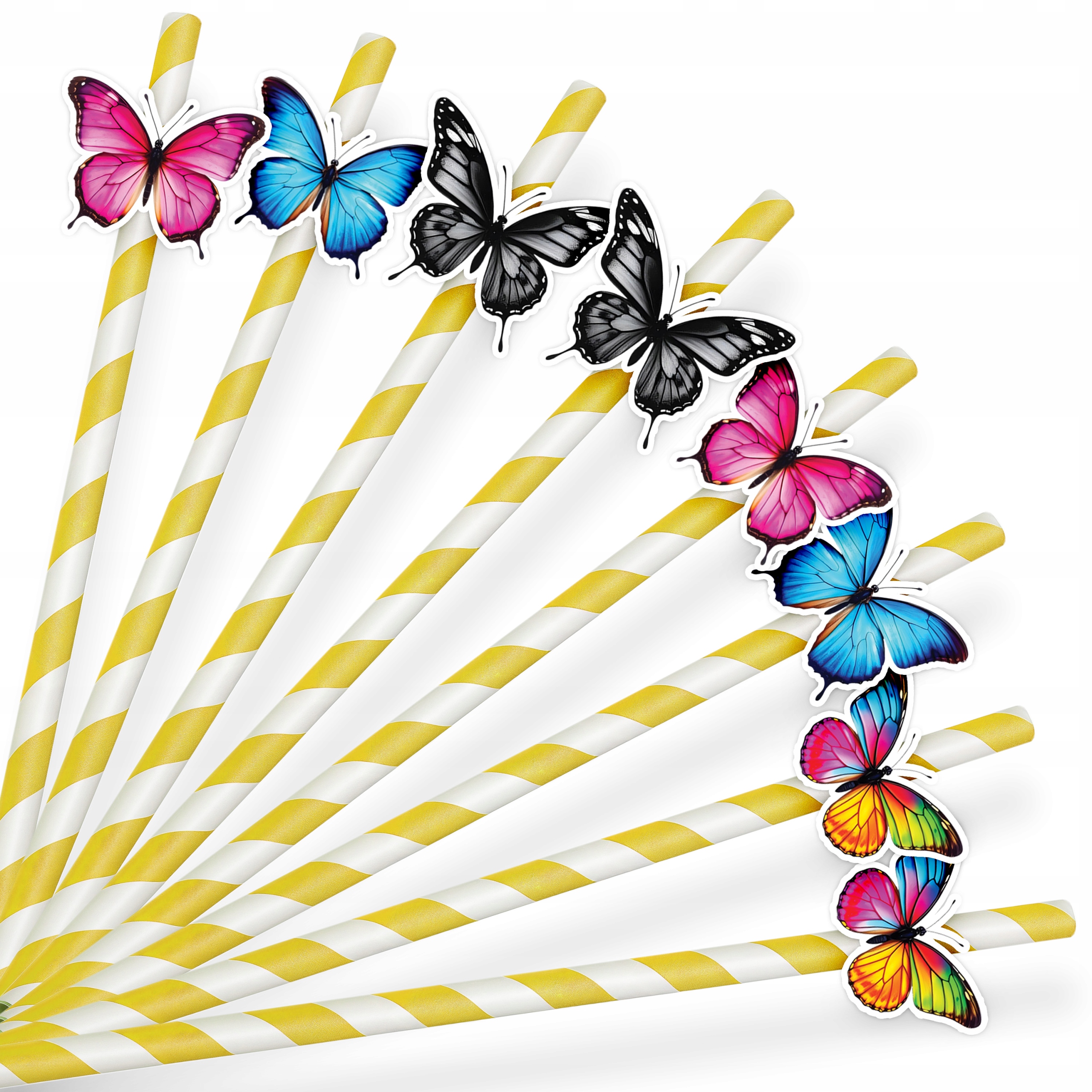 УКРАШЕНИЕ НА ДЕНЬ РОЖДЕНИЯ БУМАЖНЫЕ СОЛОМОЧКИ - БАБОЧКА КРЫЛЬЯ БАБОЧКИ ЧЕРВЯК - 8 шт.