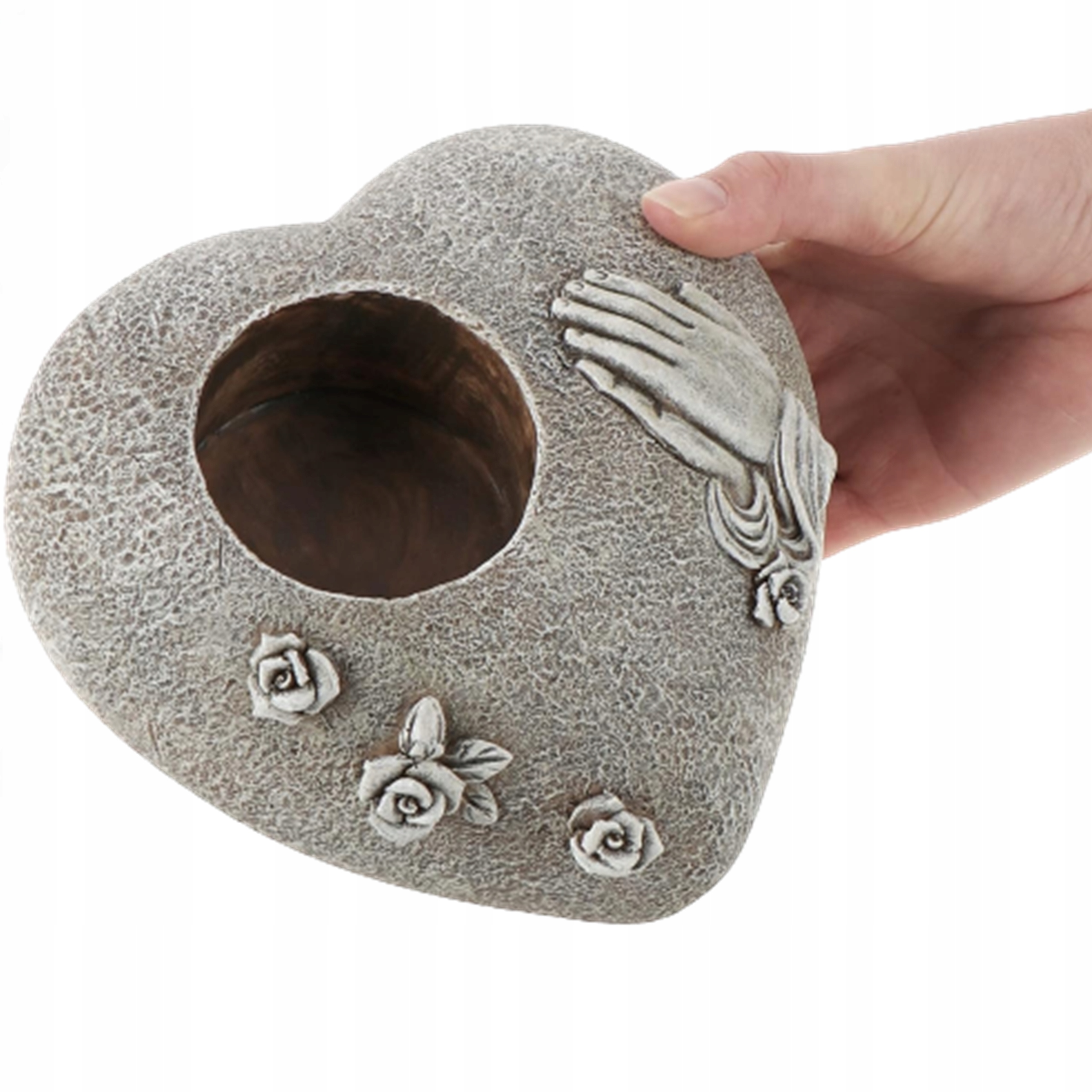 DEKORACJA DO ZNICZ LED LAMPKA NA GRÓB CMENTARZ SERCE KAMIENNE PODSTAWKA 24H