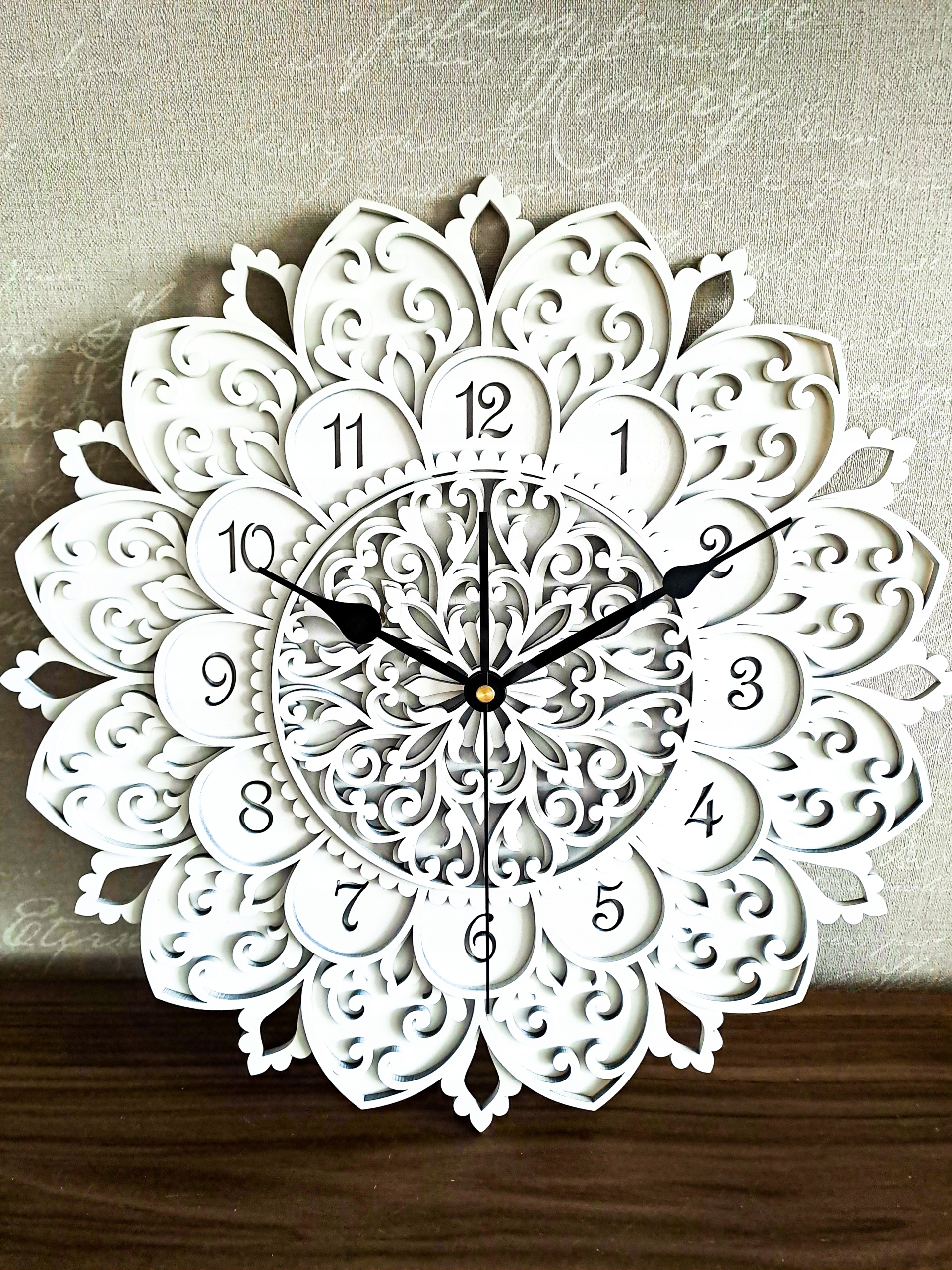 DEKORACYJNY, AŻUROWY ZEGAR ŚCIENNY, MANDALA, KWIAT, CICHY,HANDMADE, PREZENT