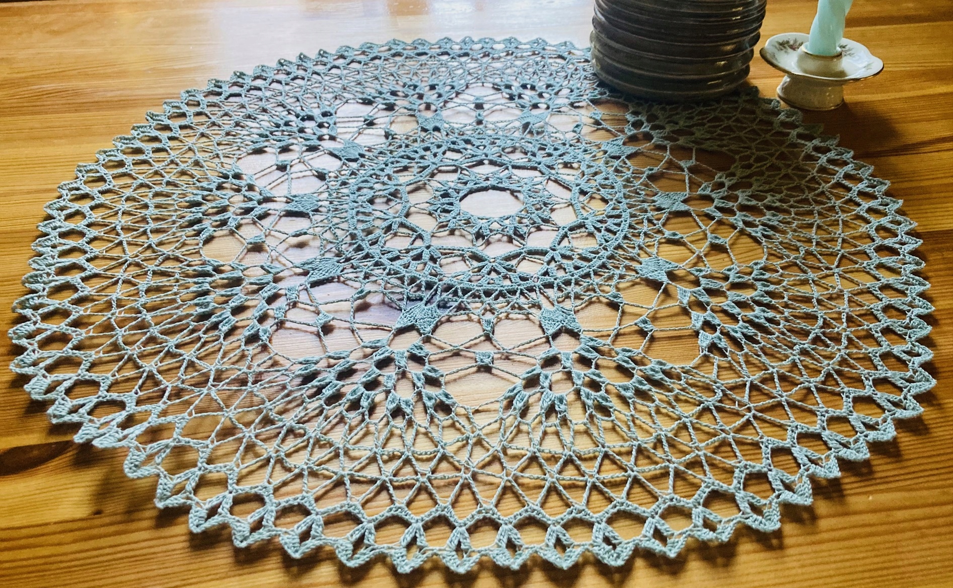 Сложное кружево из более тонкой нити придает интерьеру уникальный характер.