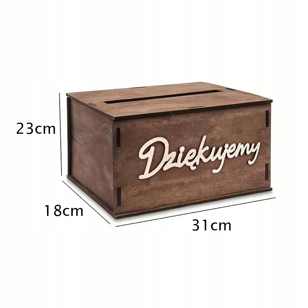Изящная шкатулка из натурального дерева – это не только практичное решение для свадьбы, крещения, причастия или других семейных торжеств, но и красивое украшение стола. Благодаря этому все открытки, конверты с пожеланиями и небольшие подарки от гостей будут храниться в одном надежном месте.