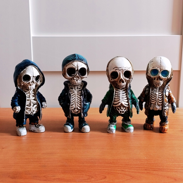 ⭐ У фигуры блестящая одежда, а скелет и череп матовые.