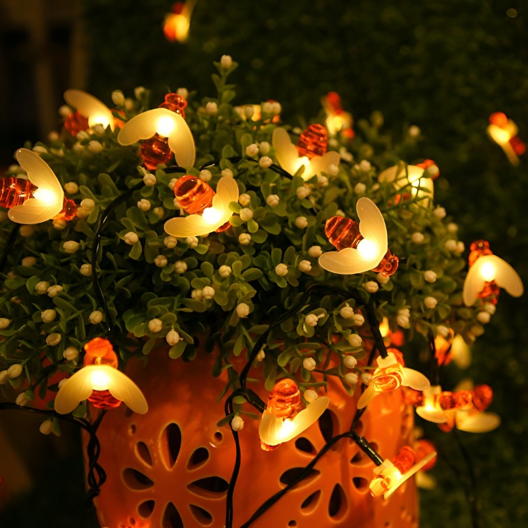 Придайте нотку прихоти и радости своим внутренним и внешним пространствам с помощью этих очаровательных декоративных светодиодных солнечных фонарей Bee. Этот комплект гирлянд с 20 очаровательными светодиодами в форме пчел излучает теплое и манящее свечение, которое идеально подходит для создания уютной атмосферы.