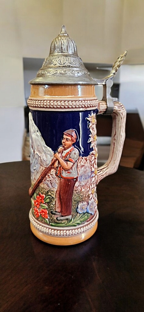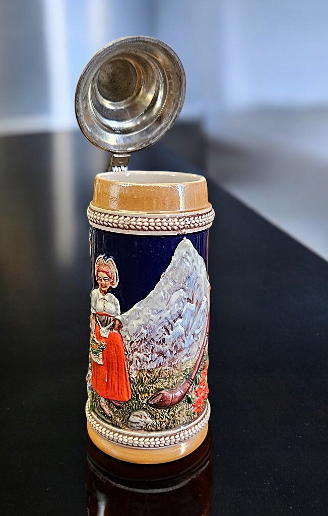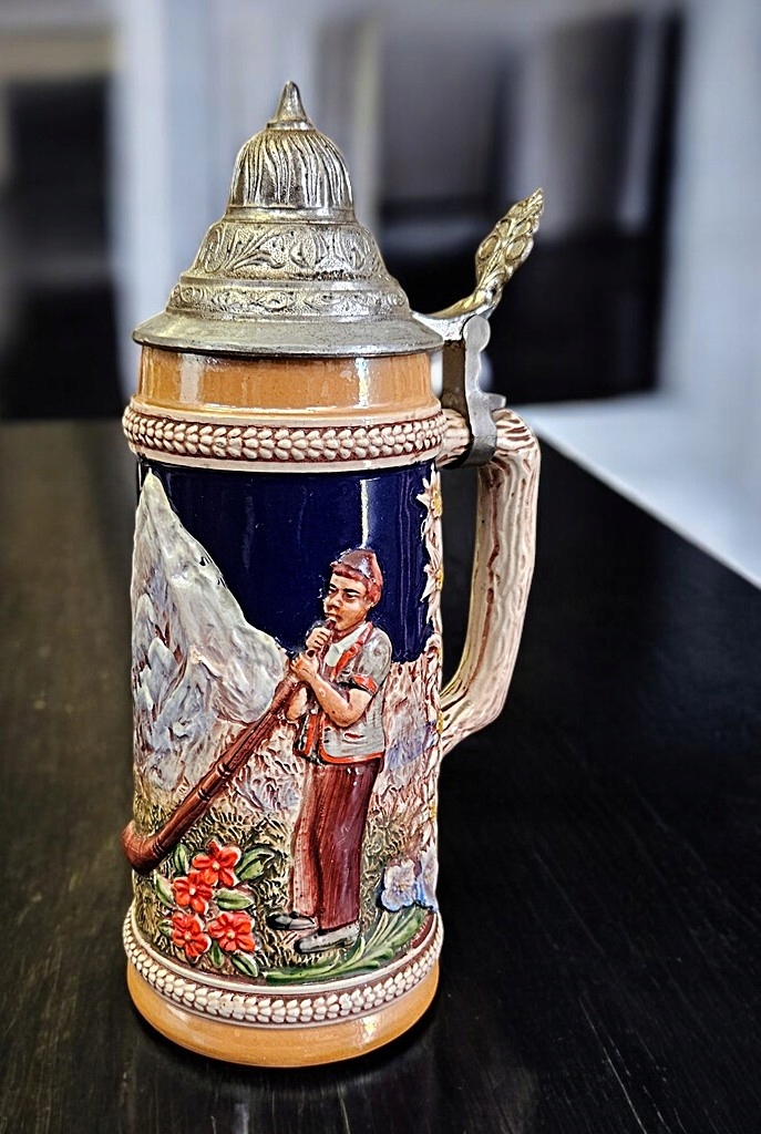Декоративная керамическая кружка с жестяной крышкой для пива Бавария Германия