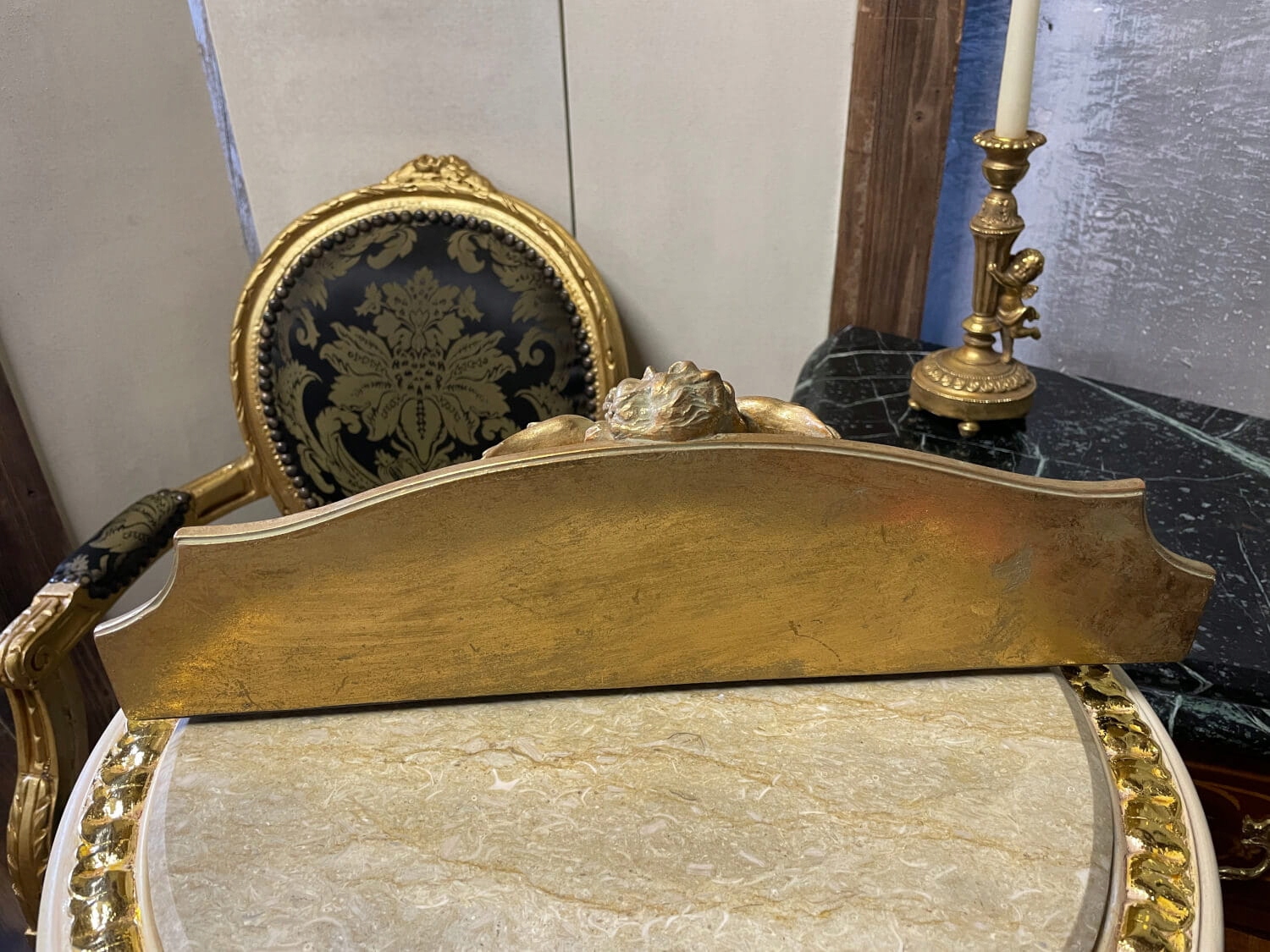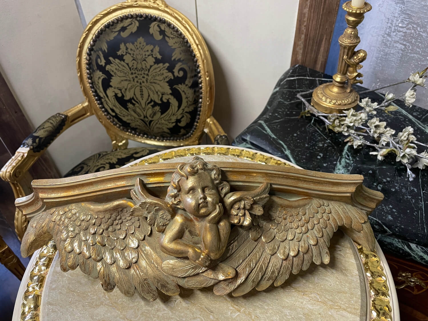 Принесите в свой дом ауру великолепия барокко с помощью нашей Золотой полки с ангелом — шедевра мастерства.