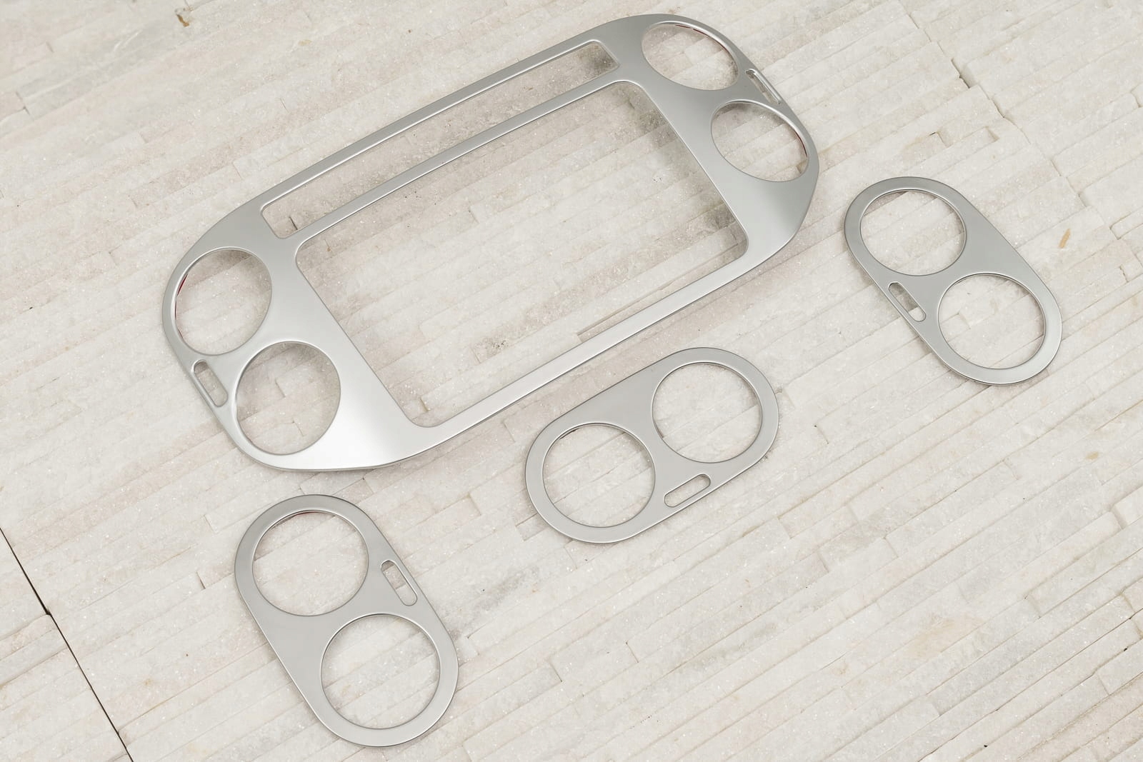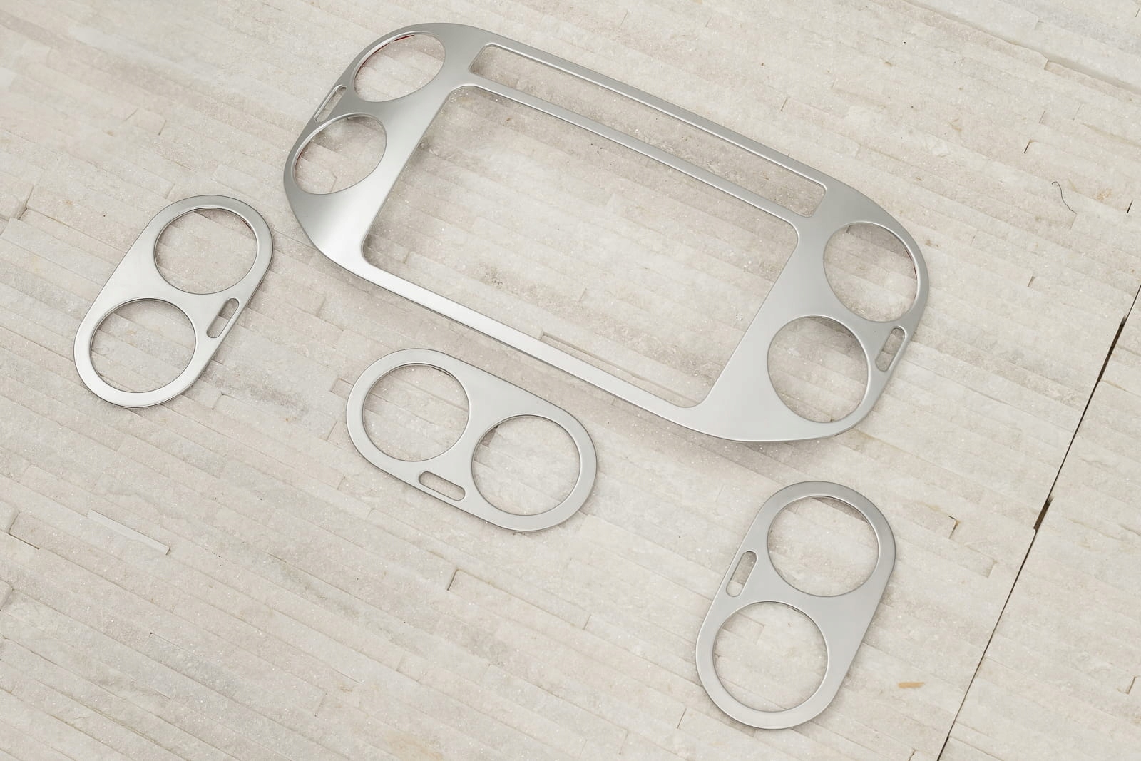 Декоративные сатиновые накладки на магнитолу и дефлекторы, посвященные VOLKSWAGEN TIGUAN I (5N) 2010-2016 гг. (версия с фейслифтингом). Также продаем декоративную рамку для выключателей света - номер EAN: 5905226038316.