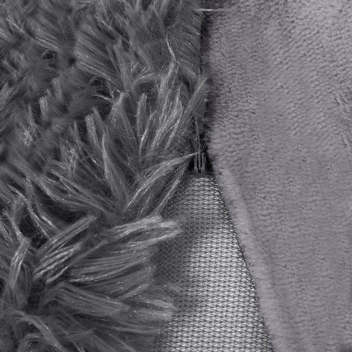 Изделие двустороннее. Одна сторона представляет собой лохматый мех с щетиной длиной примерно 2 см. Другая сторона - форма, мягкий плюш. Каждый слой выглядит эффективно по-своему.