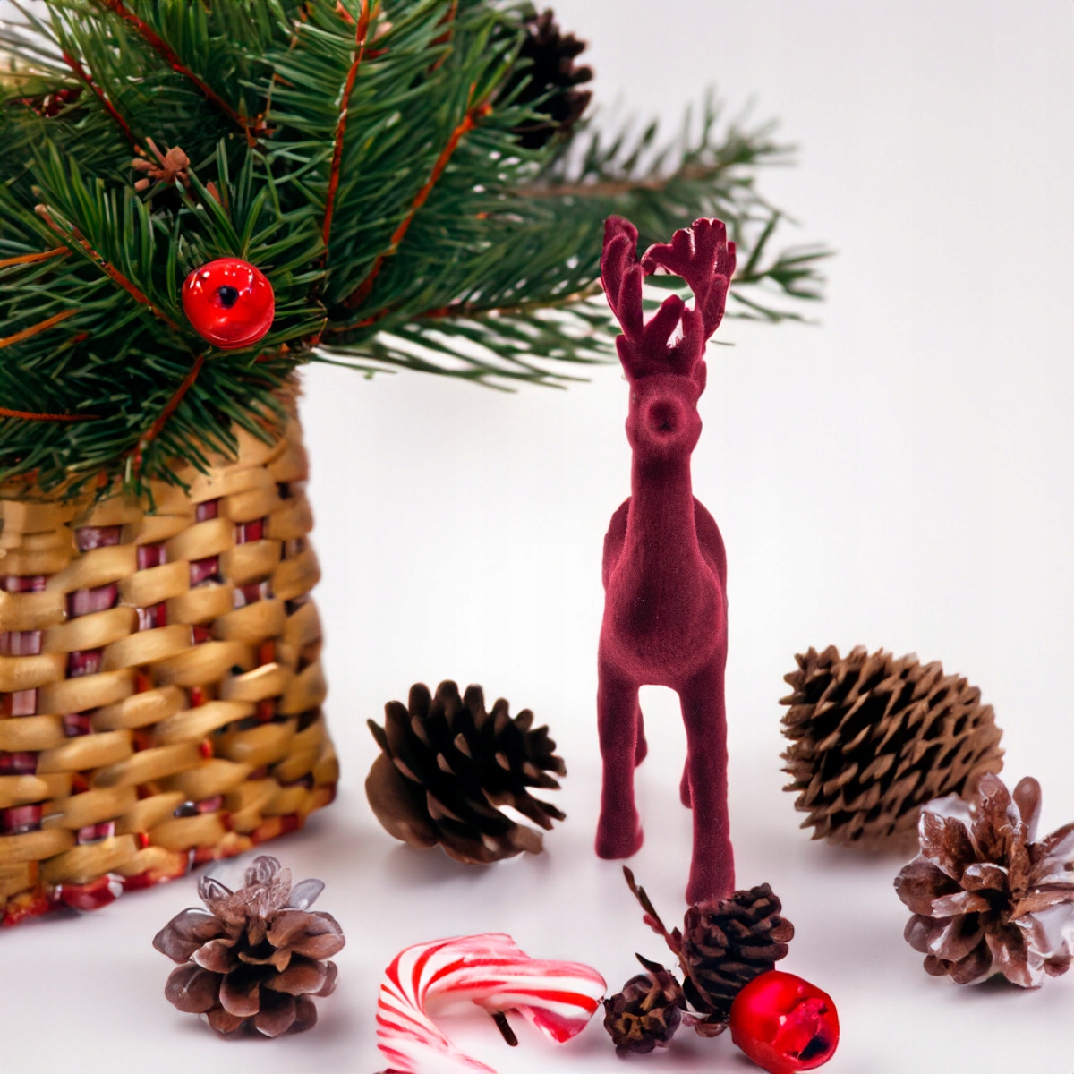 ✅ Элегантный и праздничный дизайн: Олень выполнен в бордовом цвете и покрыт нежными, мягкими волокнами (флоками), которые придают ему эксклюзивный вид.