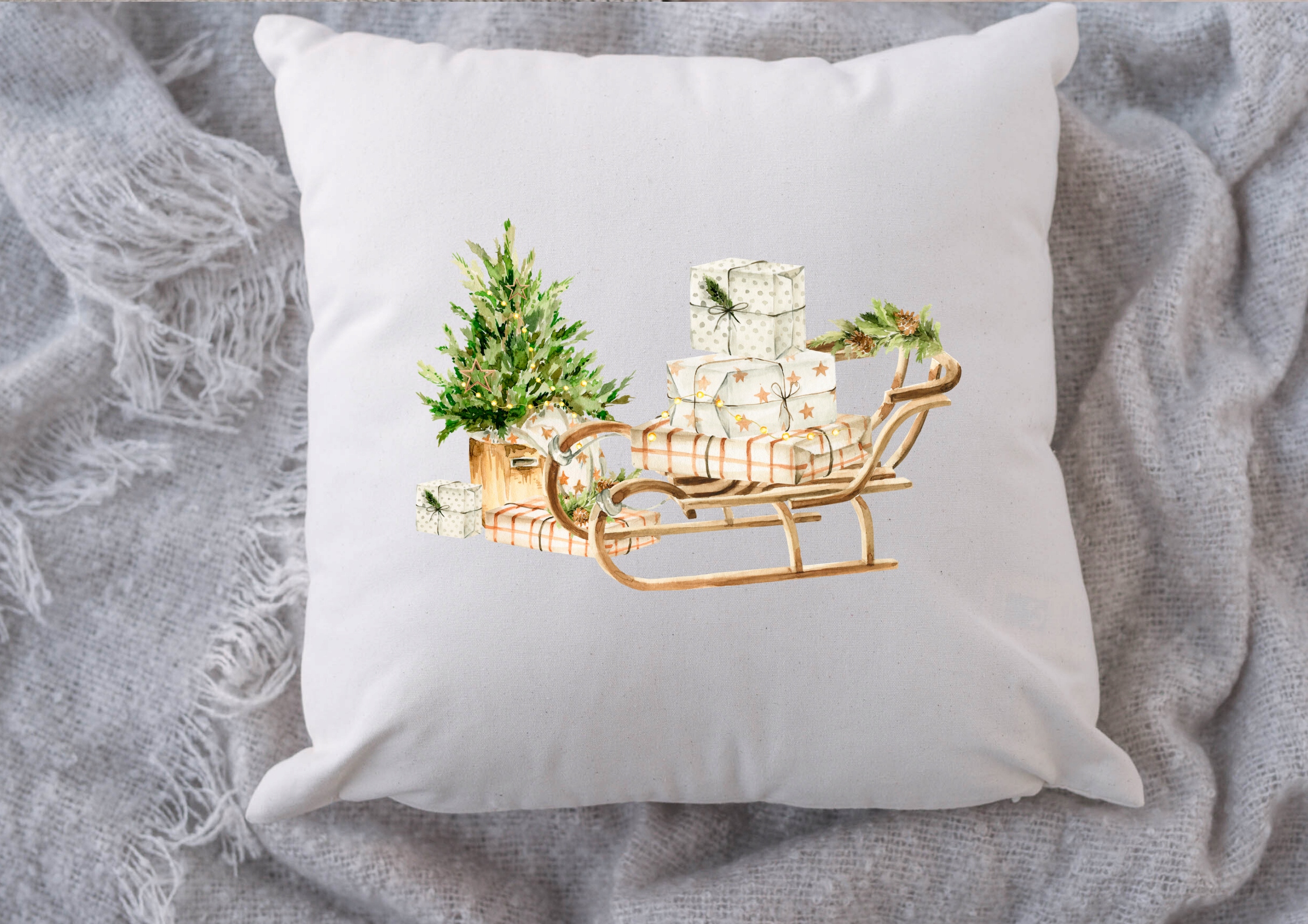 Декоративна новорічна наволочка для новорічних саней