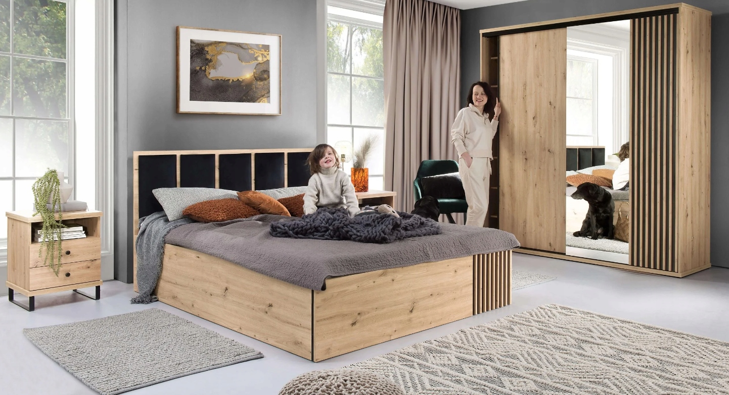 ДЕКОРАТИВНА ПАНЕЛЬ З ЛАМПАМИ чорний/дуб ремісничий Колекція Cali LAMINATE
