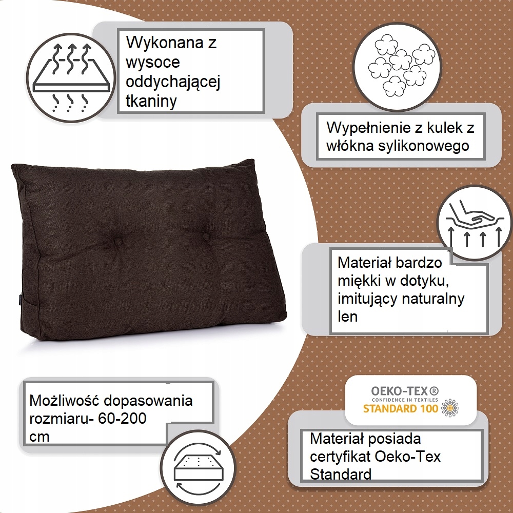 Дышащая наволочка изготовлена из сертифицированных материалов OkoTex, имитирующих натуральный лен.