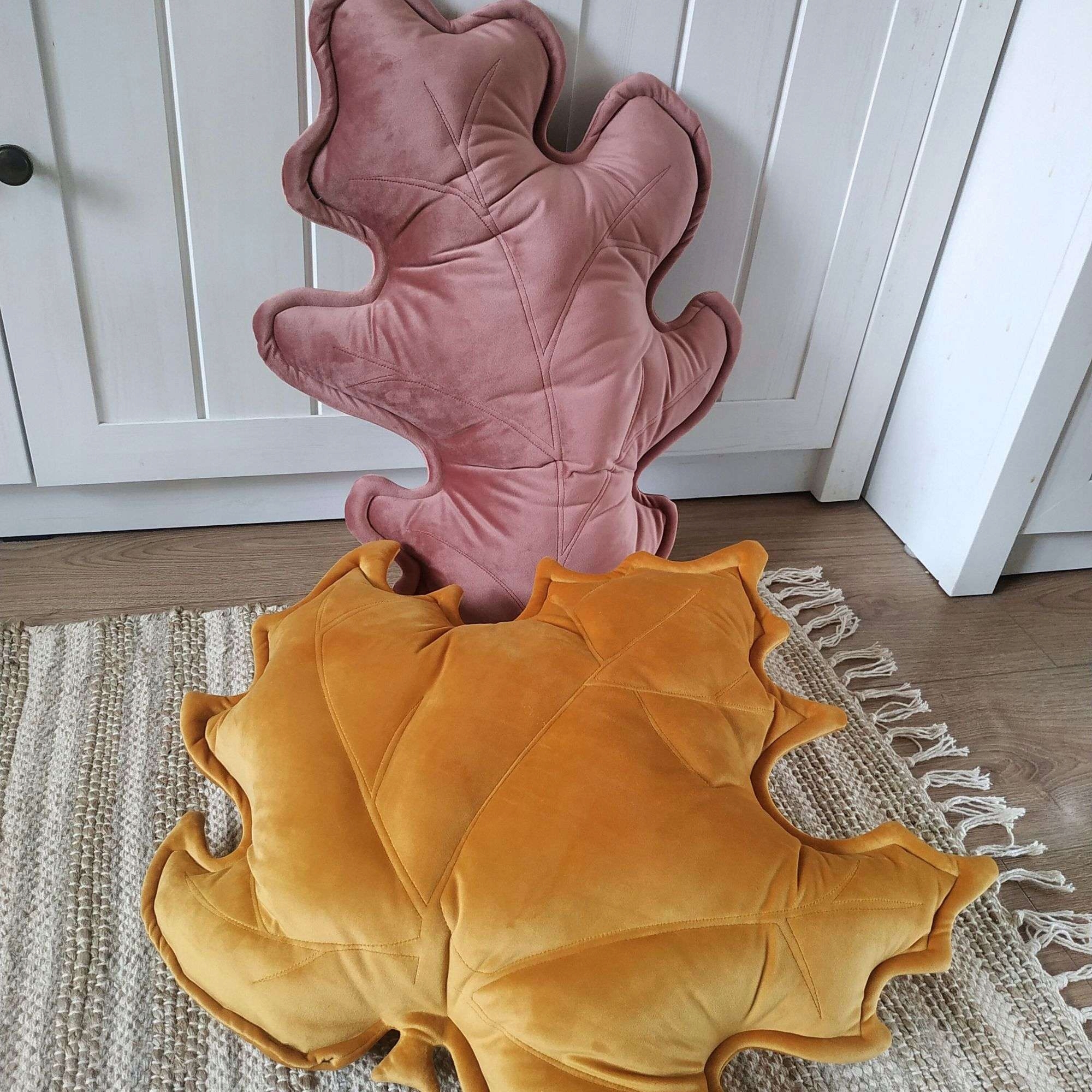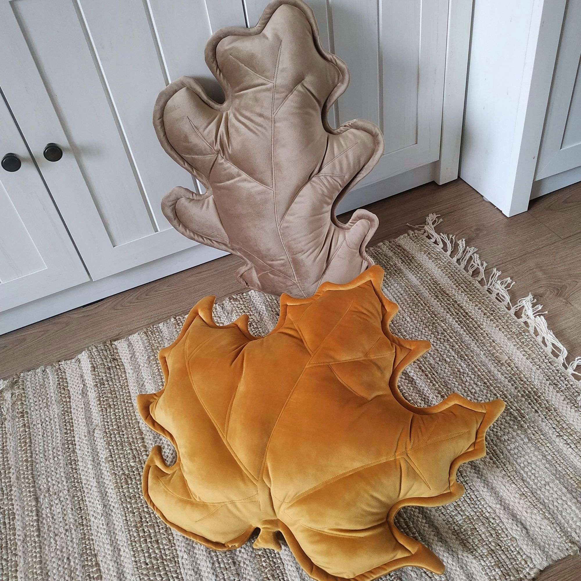 Форма листьев: Подушки в форме листьев напоминают природу и сезонные изменения. Они могут иметь реалистичную форму листьев или быть стилизованными, более абстрактными.