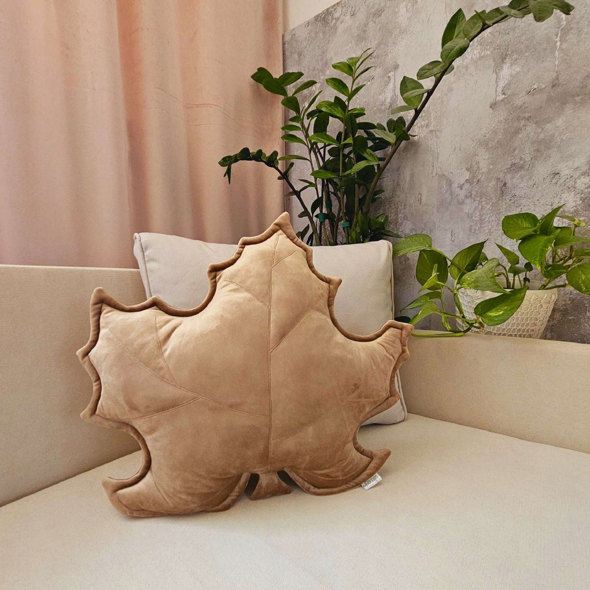 Декоративная подушка велюр бежевый лист оригинальный свадебный подарок