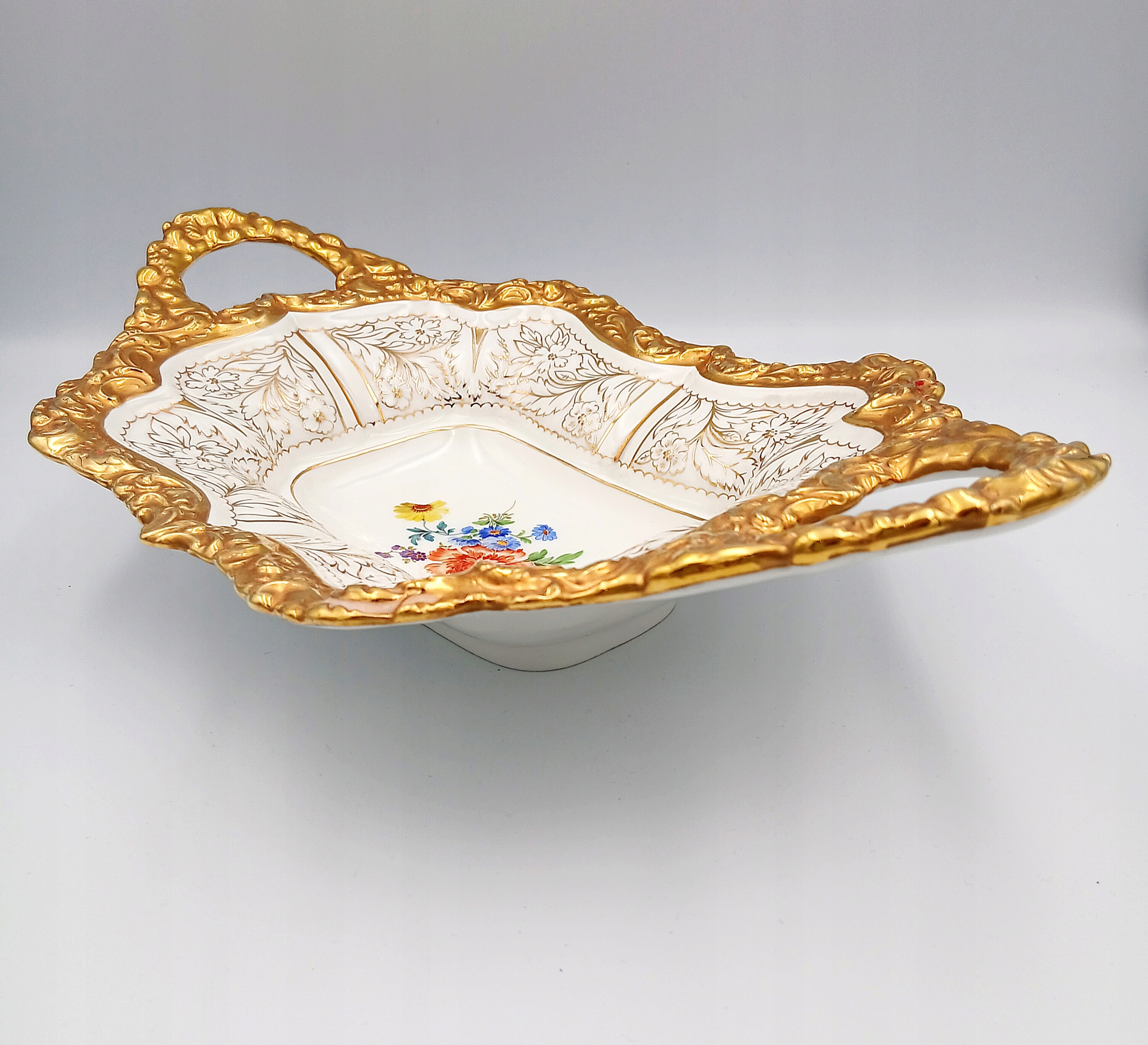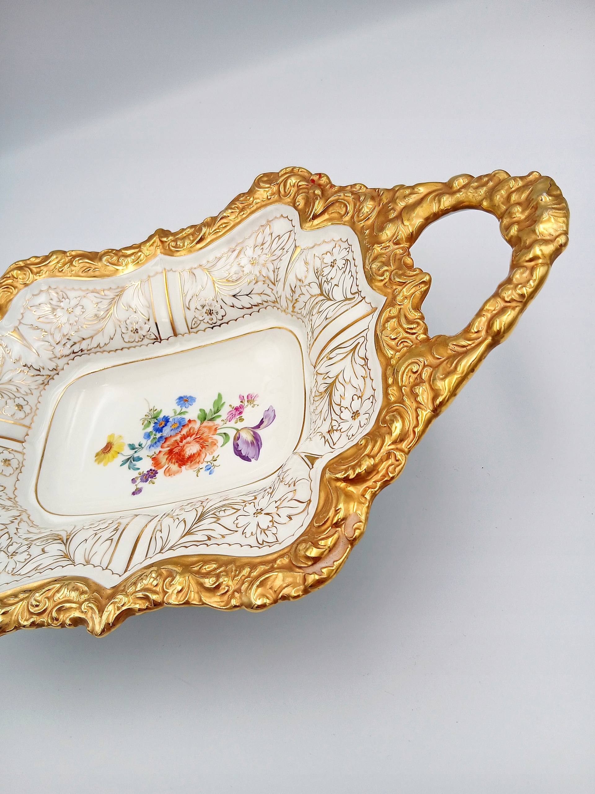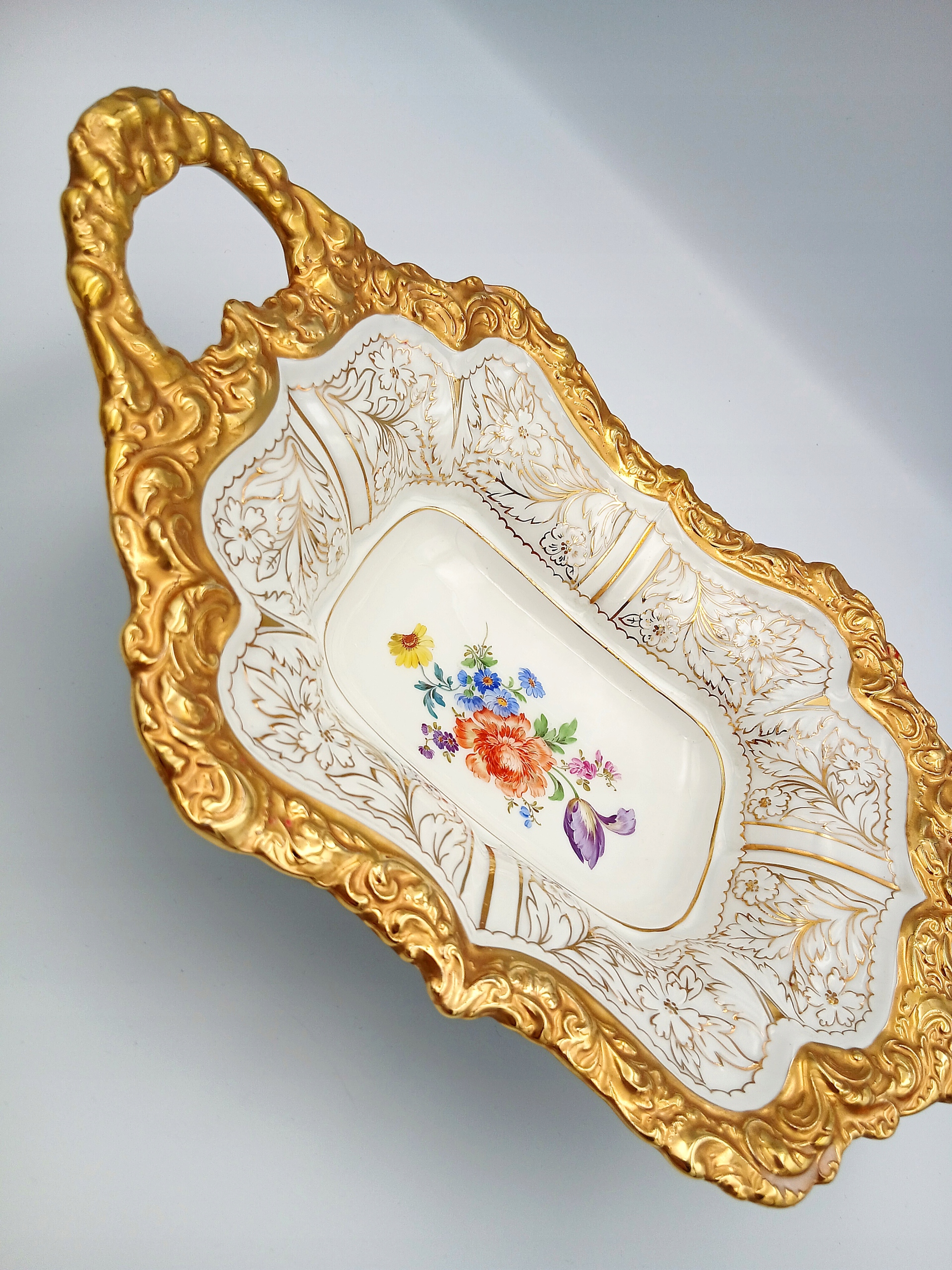 Дополнительно украшена букетом цветов. Красивый, старинный кусок мейсенского фарфора.