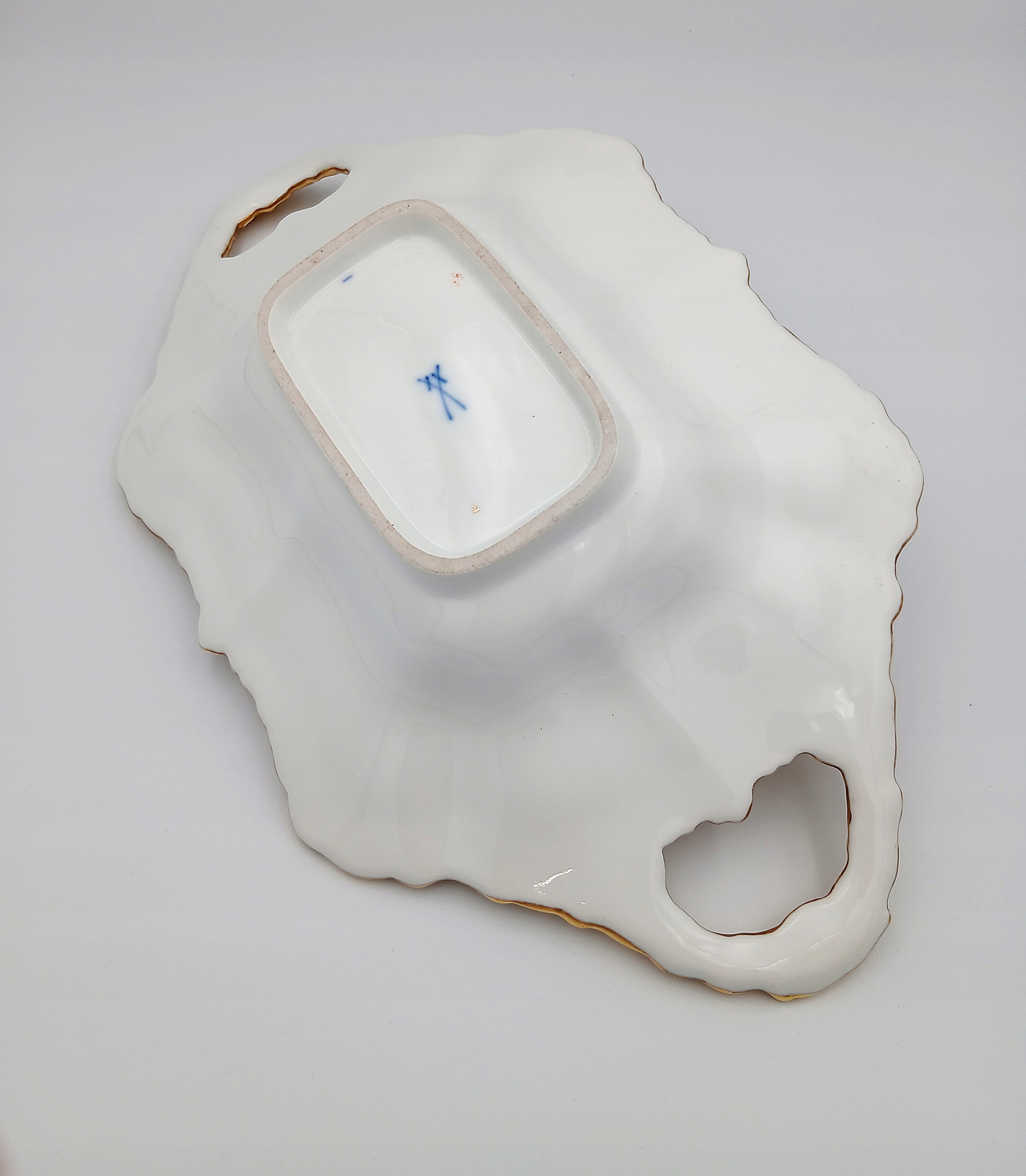 Подглазурный синий знак мейсенского меча, без следов шлифовки.