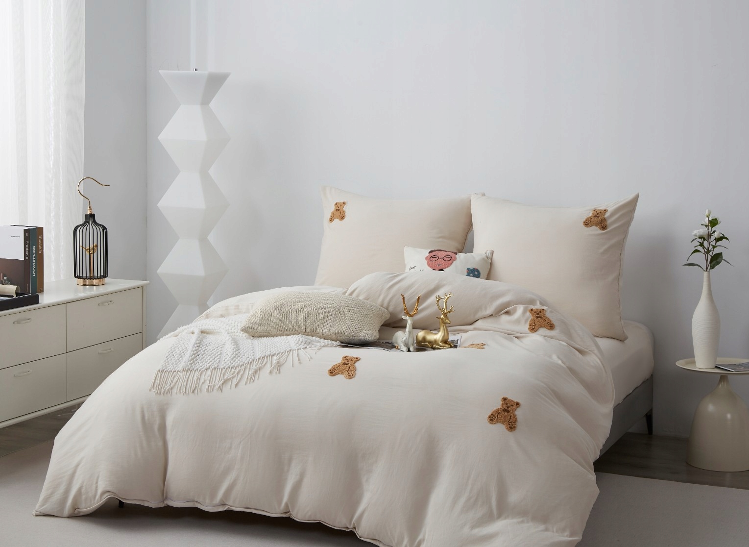ДЕКОРАТИВНАЯ МИКРОФИБРА КРОВАТЬ ПОСТЕЛЬНЫЕ МЕДВЕДИ 220х200 + 2 НАВУШКИ КОМПЛЕКТ БЕЖЕВЫЙ