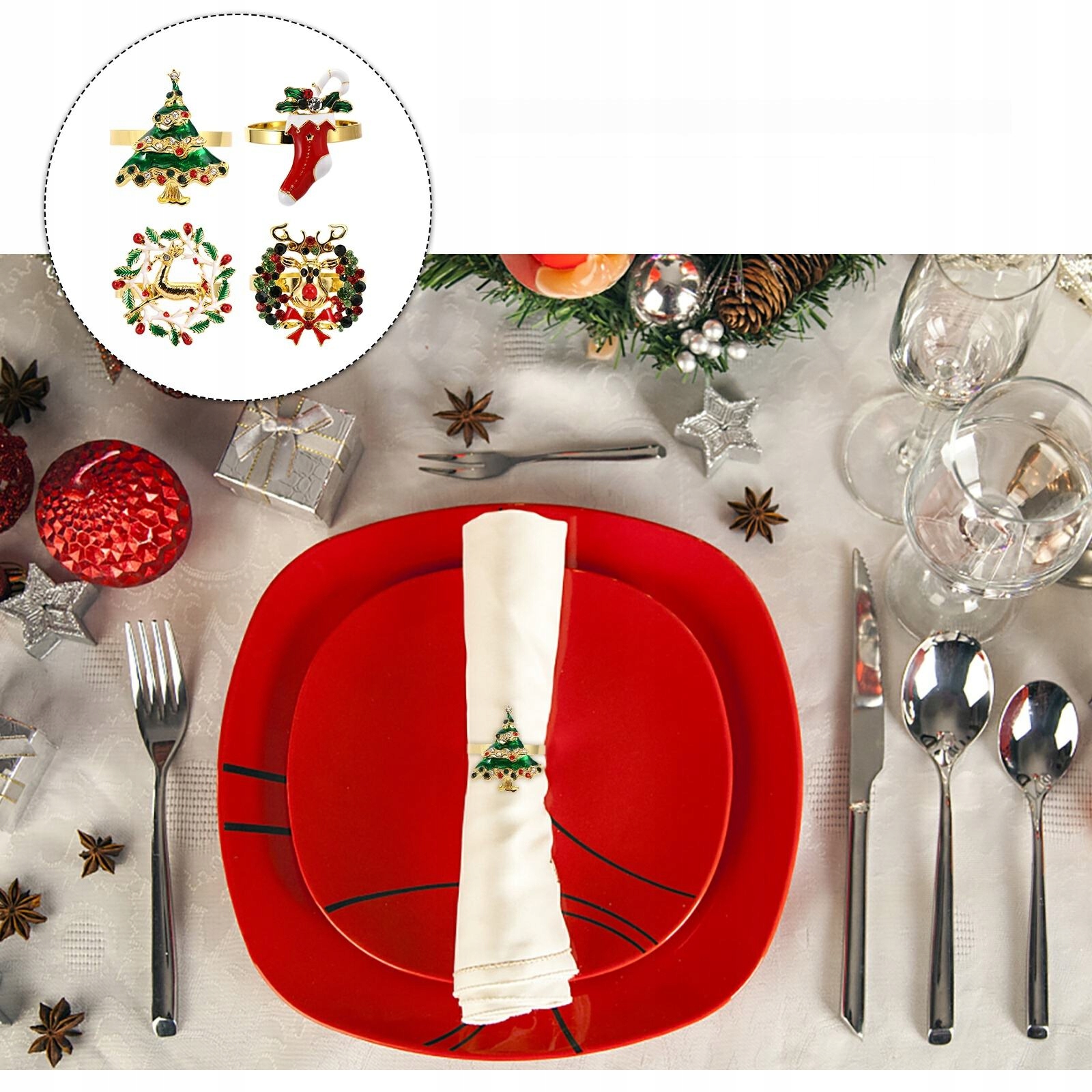 ✅Это набор зажимов для рождественских салфеток. Изготовлен из высококачественного сплава, для длительного использования. Эти кольца для салфеток рождественской формы очень милые и креативные. Они подходят для рождественской вечеринки и могут создать праздничную атмосферу на вашей рождественской вечеринке. Удобный дизайн, удобный в использовании и простой в эксплуатации.