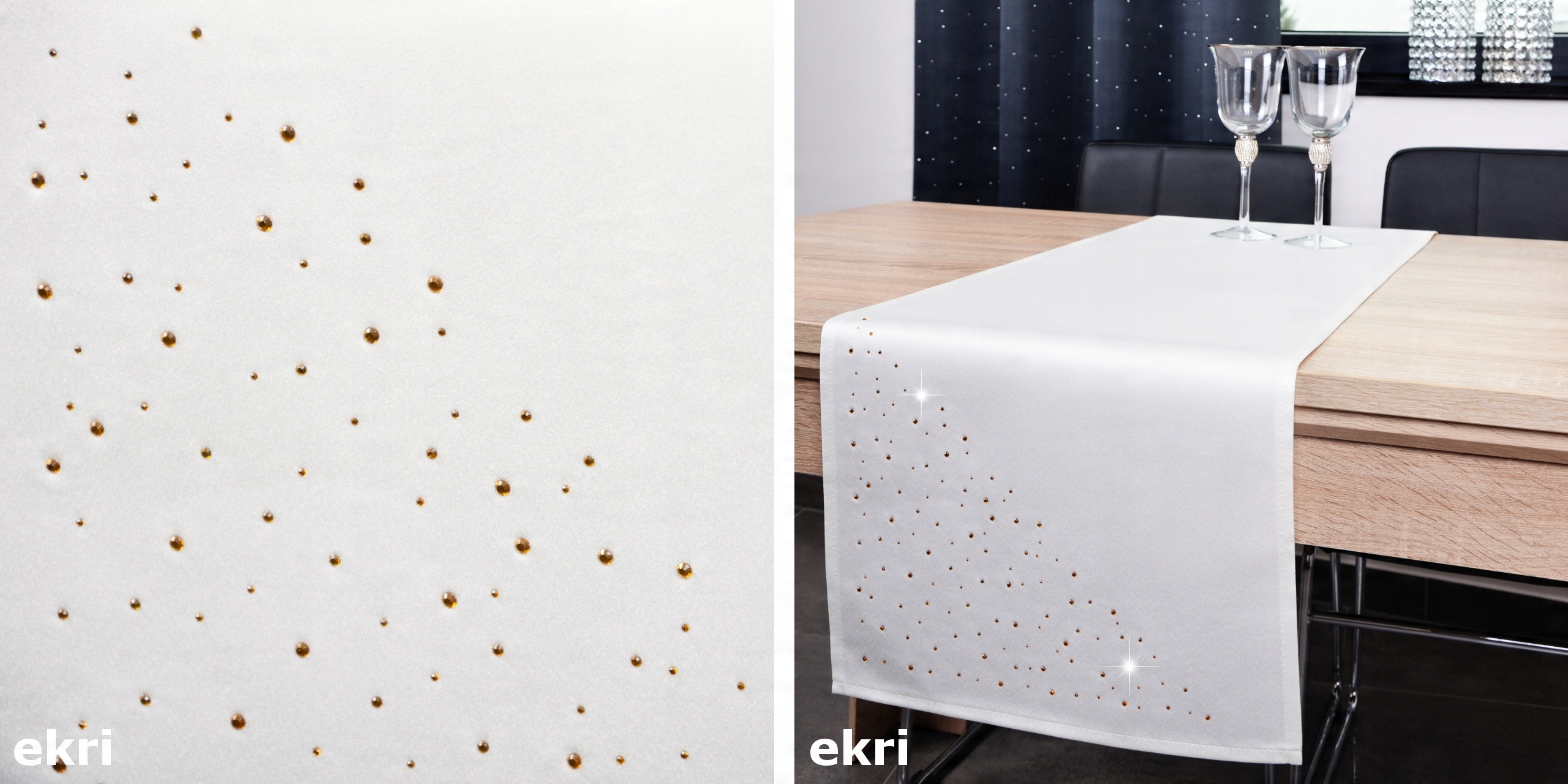 KRYSTAL — уникальная коллекция атласных скатертей, салфеток, ремней, дорожок, салфеток и наволочек. Салфетки отделаны эстетичной подложкой толщиной 1 см и украшены современным узором из стеклянных кристаллов, подобранных по цвету. Салфетки доступны во многих цветах, поэтому подобрать их к вашему интерьеру не составит труда.