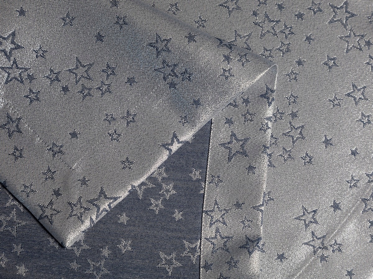 роскошная (премиум-класса) жаккардовая салфетка с серебряными рождественскими мотивами: красивые звезды на синем фоне.