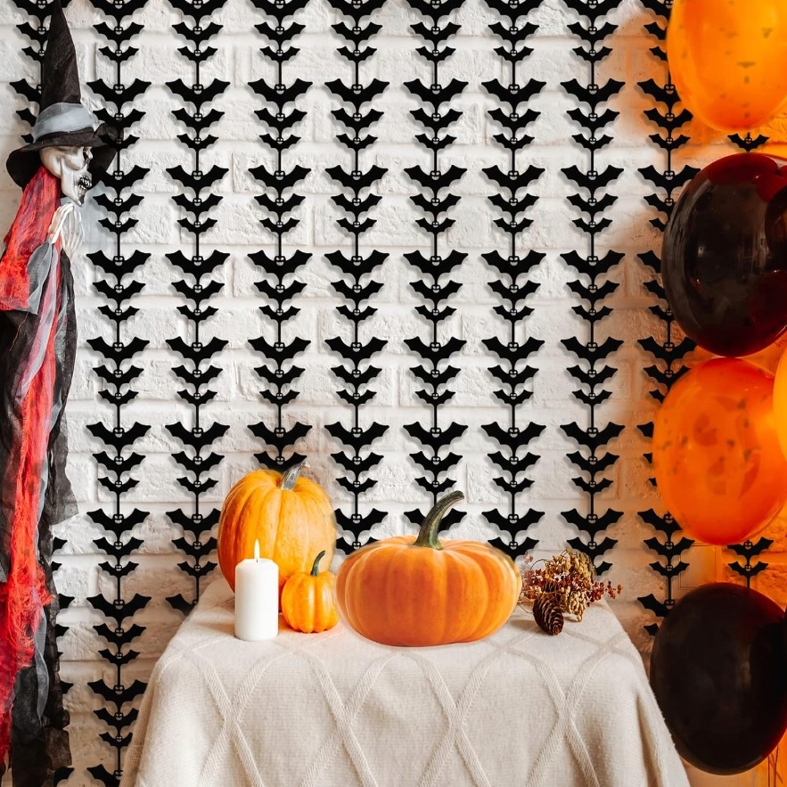 - 【Высококачественные материалы 】 Праздничная штора с летучими мышами изготовлена из черной, слегка блестящей фольги. Станет отличительным элементом композиции интерьеров, оформленных к Хэллоуину.