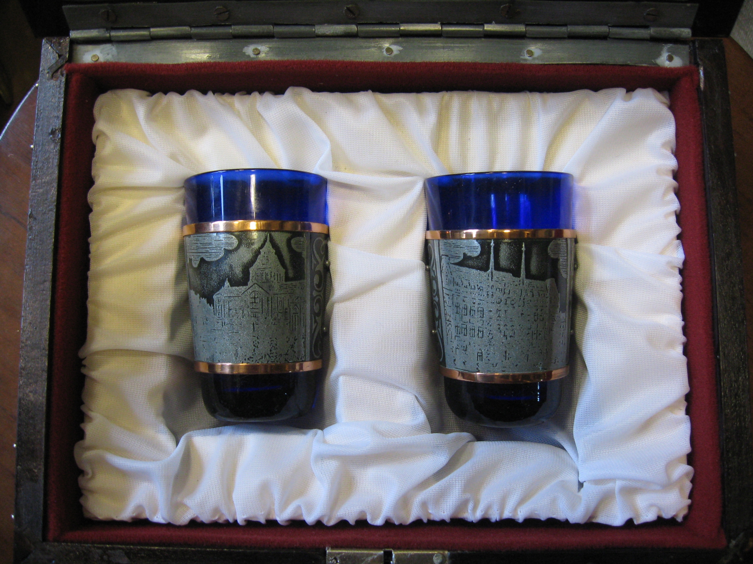 Chzzecin декоративная шкатулка с металлопластикой и два стакана белой рара