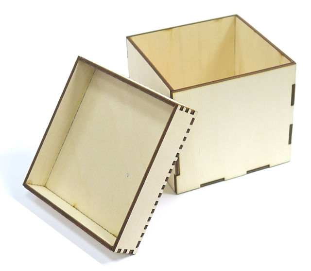 Ящик из фанеры толщиной 3 мм с крышкой, внешние размеры: 100х100х90 мм, внешние размеры крышки: 107х107х22,5 мм. >