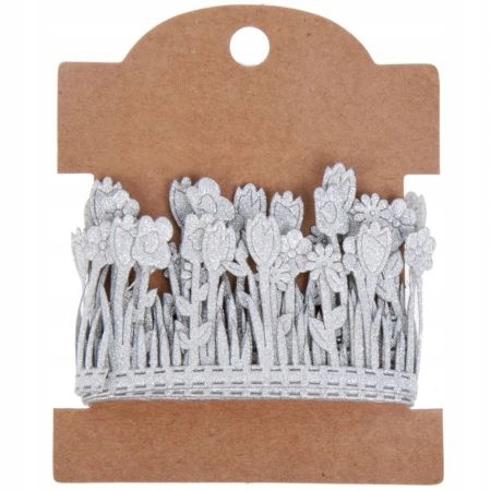Содержимое упаковки — лента с матовыми цветами длиной 2М, серебристого цвета.