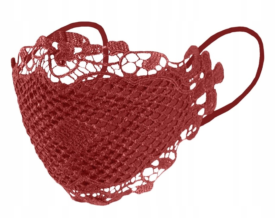 ЗАЩИТНАЯ МАСКА, УКРАШЕННАЯ КРАСНЫМ КРУЖЕВОМ.