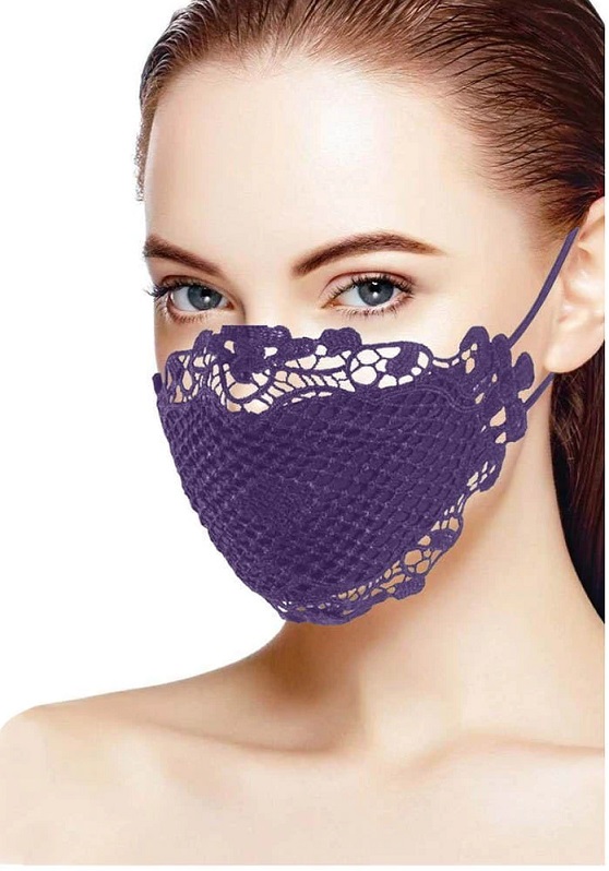 ЗАЩИТНАЯ МАСКА, УКРАШЕННАЯ ФИОЛЕТОВЫМ КРУЖЕВОМ.