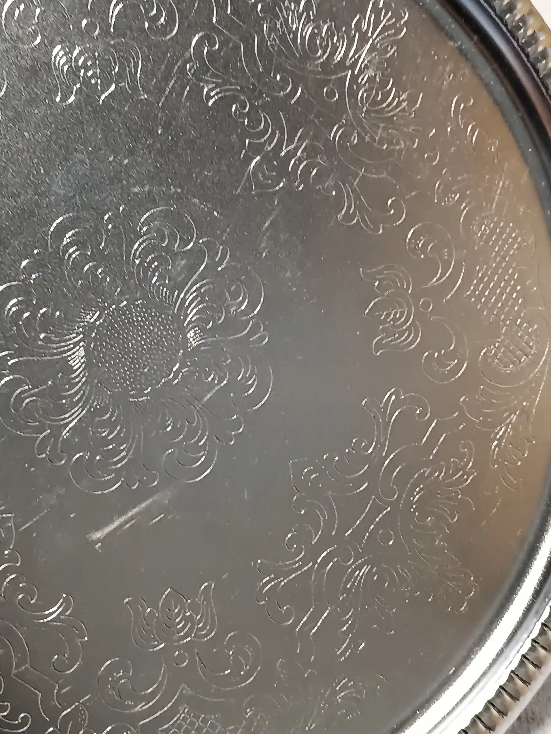 Вогнутый центр подноса богато выгравирован/тиснен.