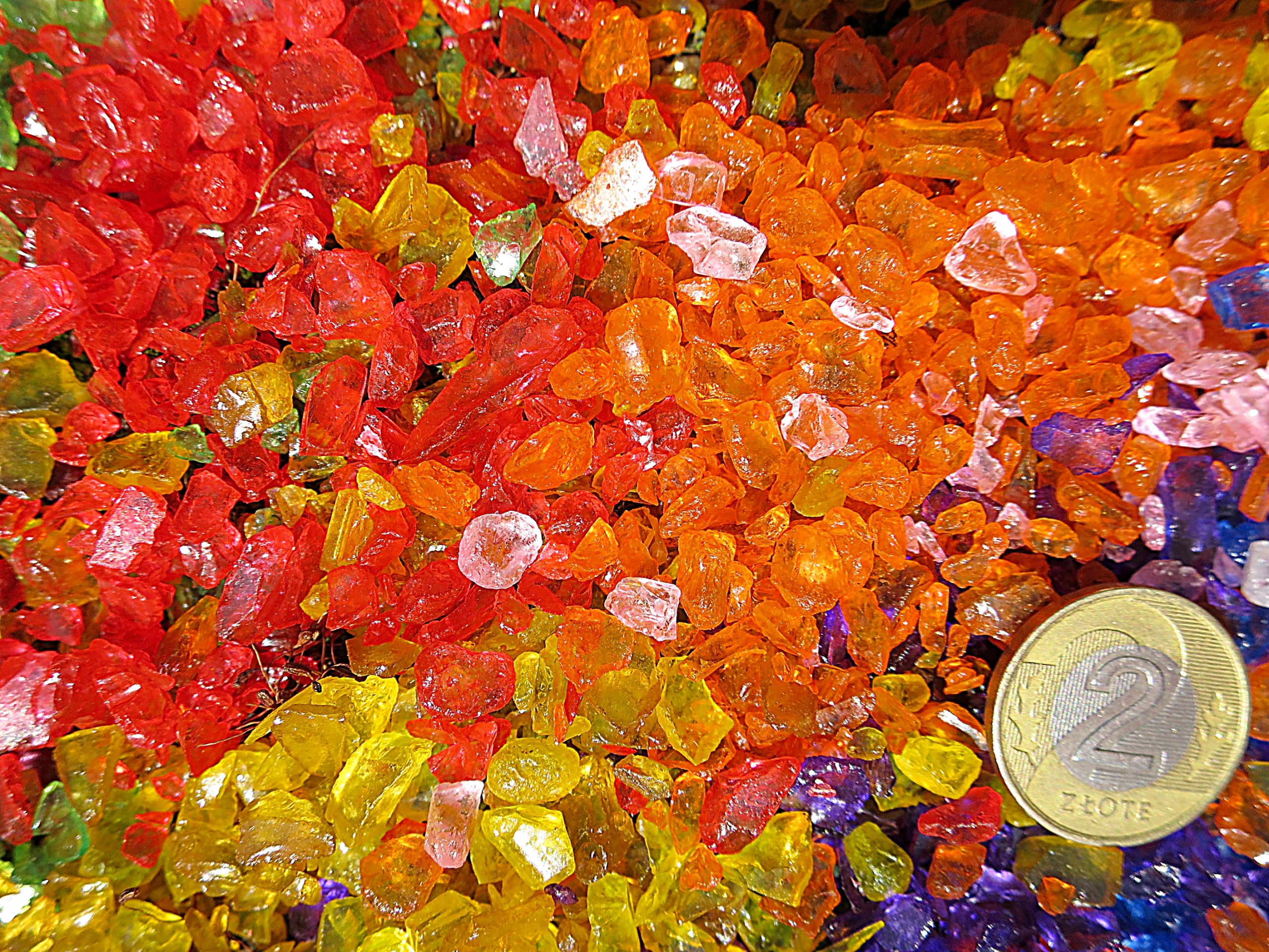 ВНЕШНЕ Окрашенные СТЕКЛЯННЫЕ ГРАНУЛЯТЫ, диаметром 2-6 мм. (Внутри бесцветен)