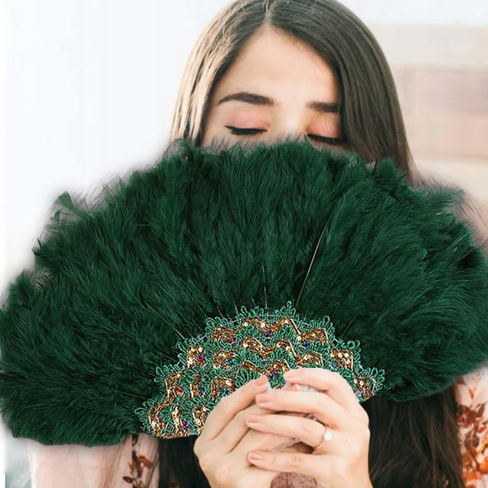 Свадебный веер из перьев невесты, декоративный винтажный стиль, ручной складной зеленый цвет