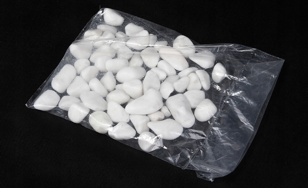 Декоративно-декоративные камни, белая галька Тасос, размер/фракция 15-30 мм - мешок 1 кг.