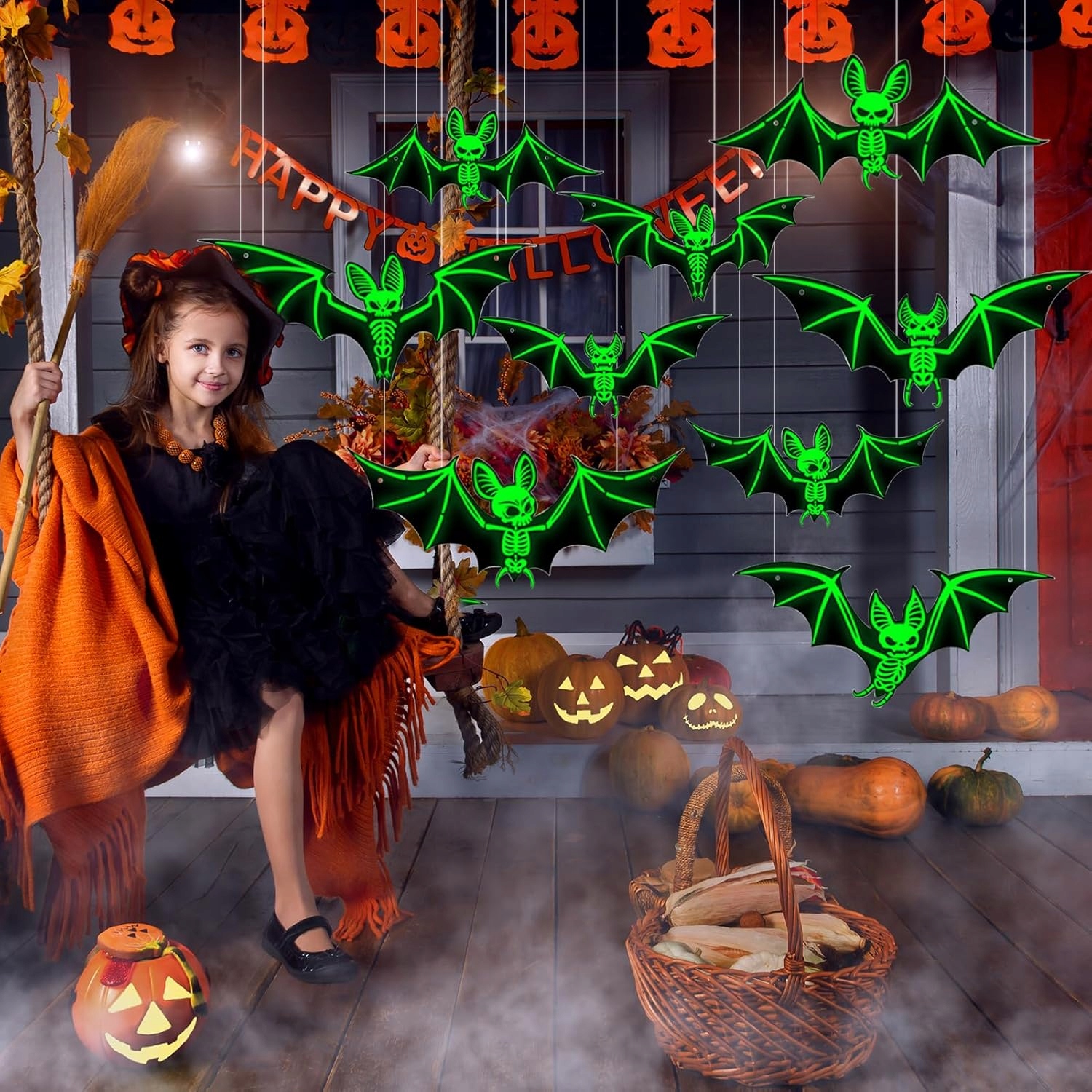🎃🎃 Спящее украшение: Набор из 10 светящихся, висящих украшений в форме летучих мышей. Летучие мыши сделаны из ПВХ, что гарантирует их долгосрочное использование. Каждая летучая мышь имеет длину около 30 см, что обеспечивает эффективный визуальный эффект.