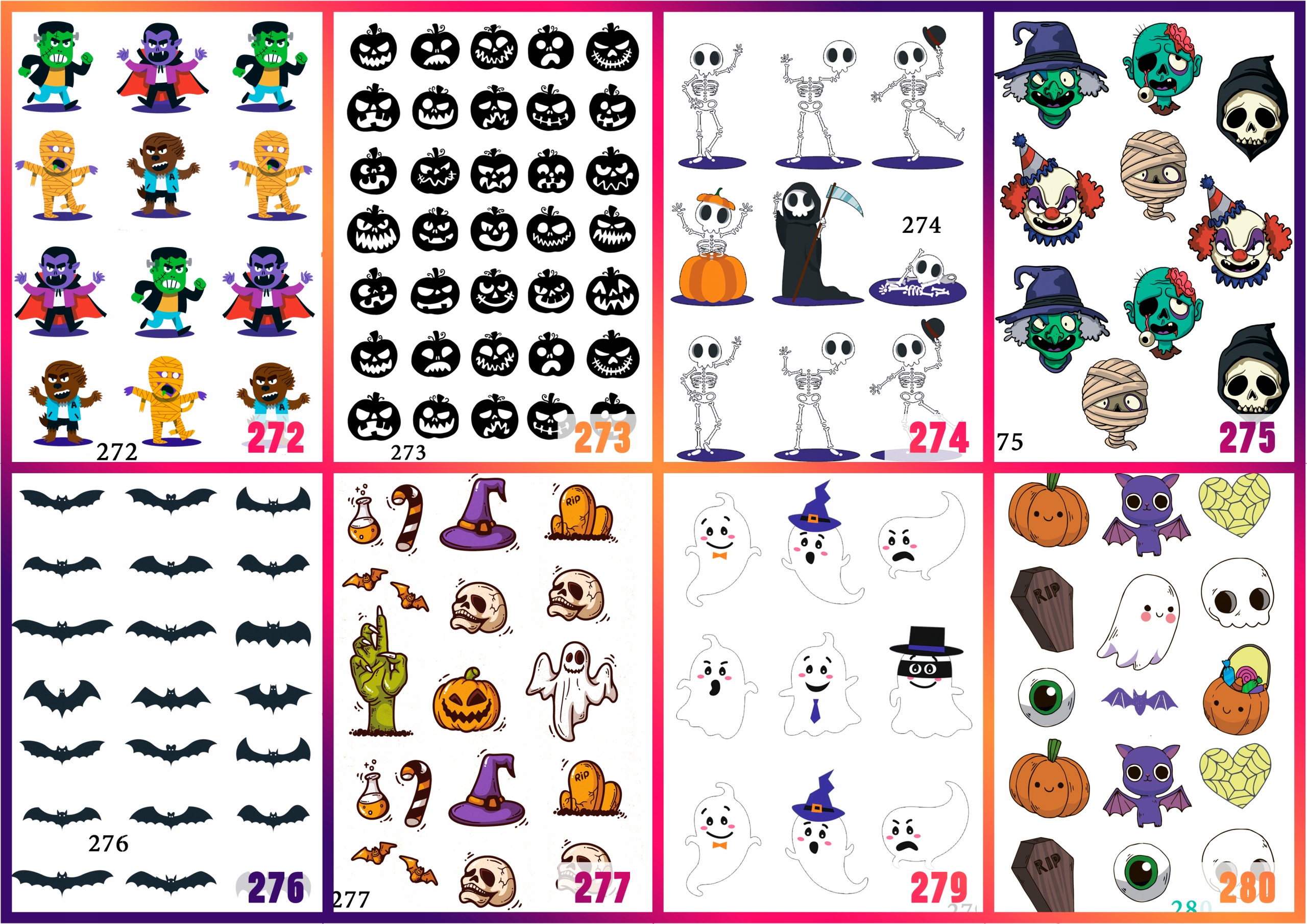 Декоративні наклейки для дітей Хелловінські призи багато візерунків 7,5х10,5 см