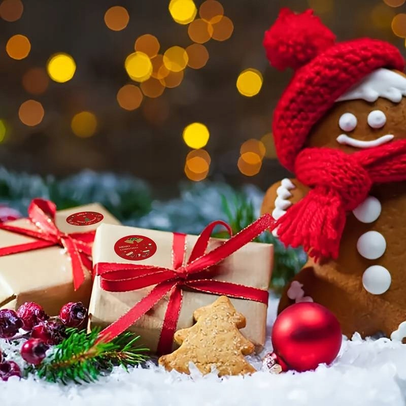 ДЕКОРАТИВНЫЕ РОЖДЕСТВЕНСКИЕ НАКЛЕЙКИ В РУЛОНЕ РОЖДЕСТВЕНСКИЕ ПОДАРОЧНЫЕ ЭТИКЕТКИ 500 шт.
