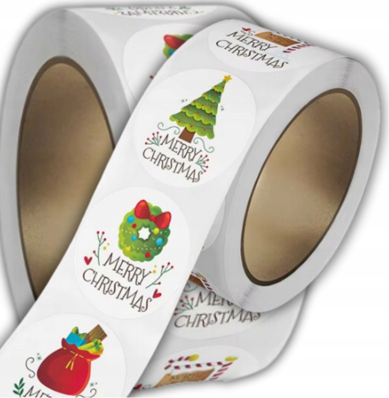 ⭐РОЖДЕСТВЕНСКИЕ НАКЛЕЙКИ ДЛЯ ПОДАРОЧНЫХ УПАКОВ ДЕКОРАТИВНЫЙ РОЖДЕСТВЕНСКИЙ РУЛОН 500 ШТ КРУГЛЫЙ⭐