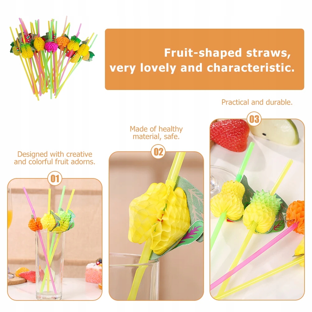 Эти милые фруктовые соломинки изготовлены из высококачественного и безопасного пластика, подходят для питья сока, кофе, пузырькового чая, молока и так далее. Это также практичный инструмент для вашей вечеринки, который может добавить ей веселую атмосферу. Приходите за этой изысканной соломинкой и наслаждайтесь вечеринкой!