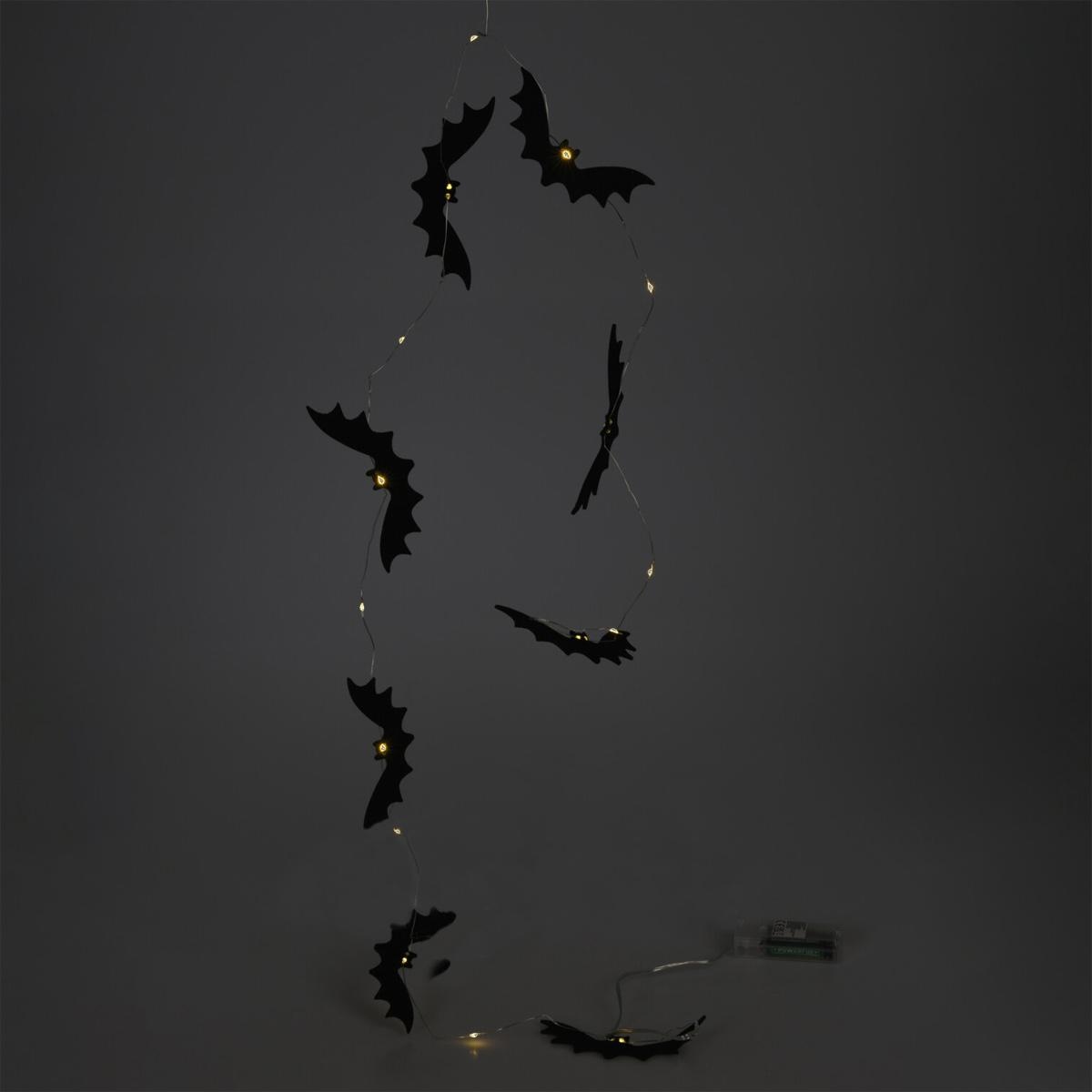 HALLOWEEN GARLAND BATS 16LED – классическое украшение Хэллоуина. , что добавляет загадочности и ужаса в любой интерьер. Летучие мыши — символ ночи и тьмы, что делает их идеальным мотивом для Хэллоуина.