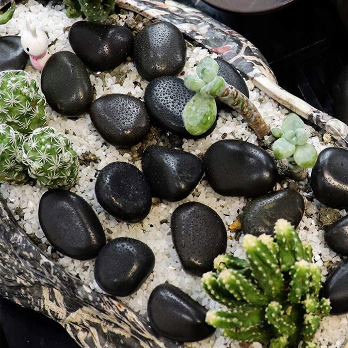 Черная полированная галька собирается вручную со дна океана, имеет гладкую поверхность, поскольку отполирована естественным путем, оригинальные круглые формы создаются благодаря влиянию природных условий океана.