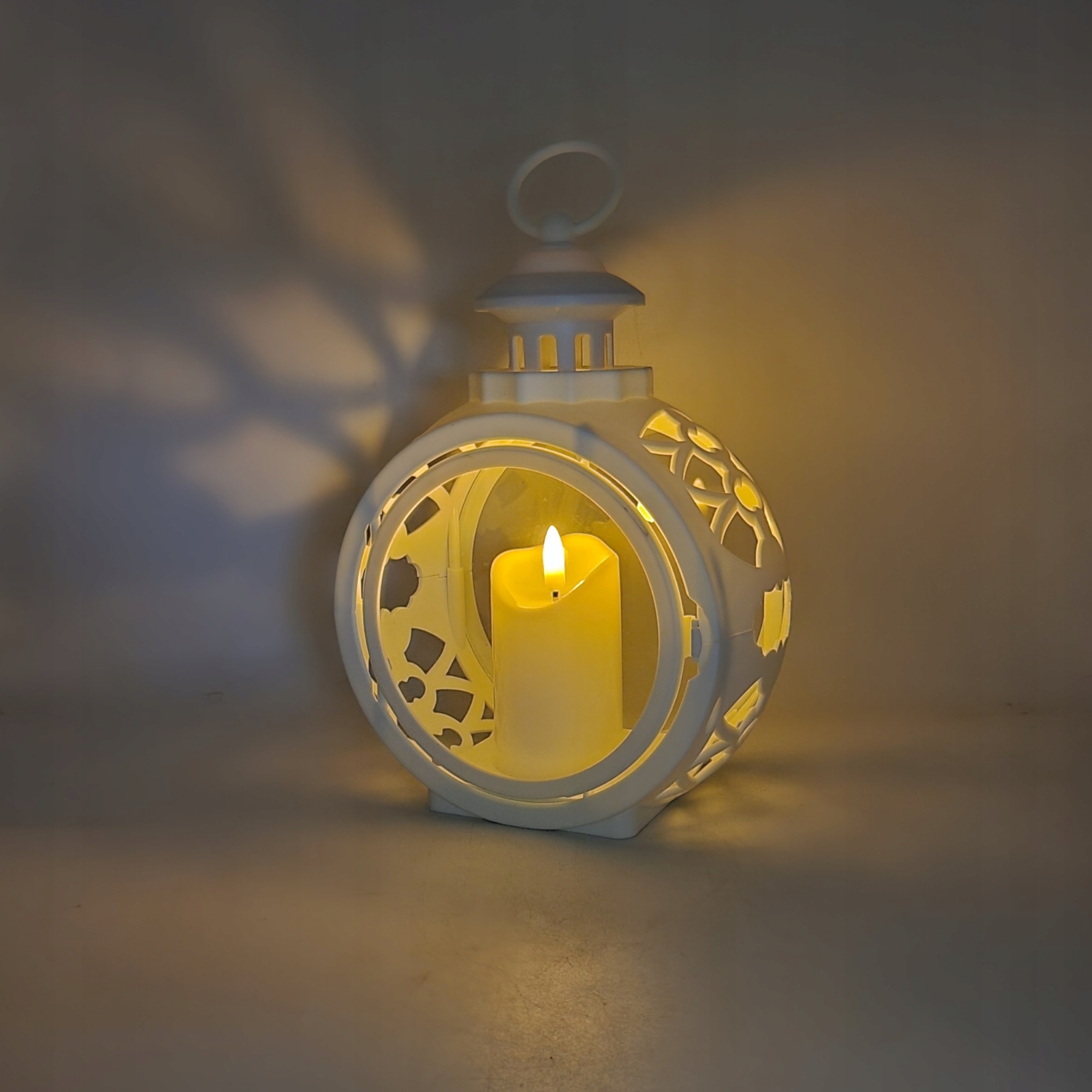 Декоративний круглий ліхтар із дверцятами для світлодіодної свічки, білий, 23 см